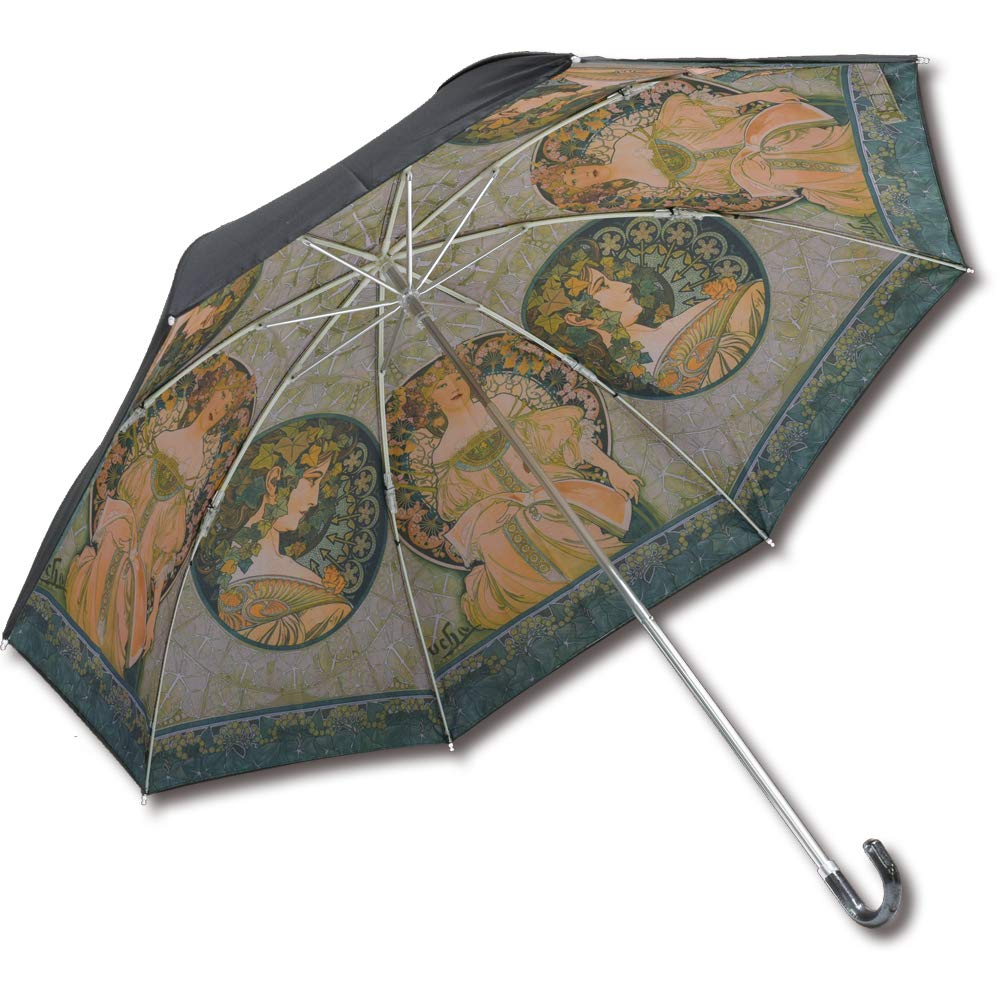 ユーパワー 名画折りたたみ傘(晴雨兼用) ミュシャ「蔦と夢想」 AU-02501 広げた時のサイズ:直径85×長さ73cm、親骨の長さ:49cm(8本)