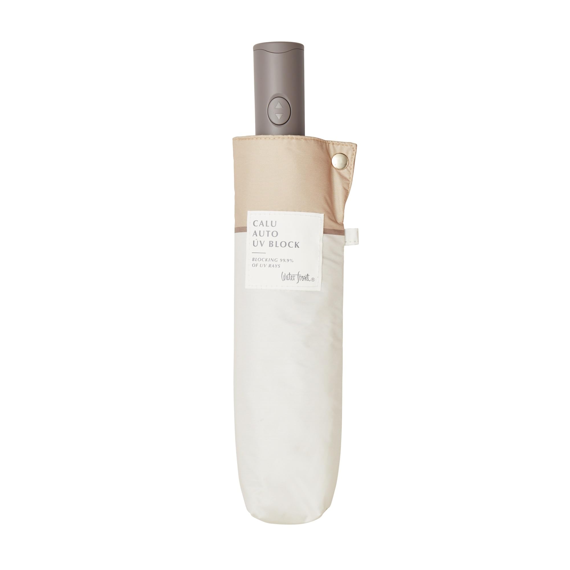 Waterfront 折りたたみ傘 日傘 兼用 雨傘 umbulatio シリーズ 『 カルオート UV ブロック 折 』 バイカラー サンド ベージュ 55cm 便利だけど思いが当たり前な自動開閉傘をグッと軽量に 軽量 約240g + 自動開閉 + 撥水 4級 + UVカット 99.9% + 遮光 99.99% + 遮熱 レディース S355-0877BG1-B3