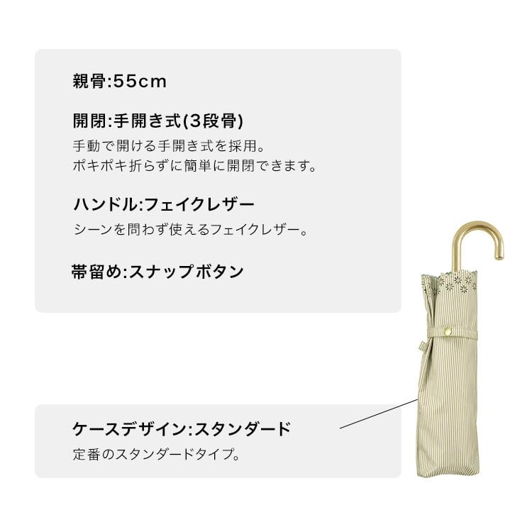 Wpc. 日傘 折りたたみ傘 遮光フラワーカットストライプ ミニ ベージュ《遮光率100%・UVカット率100%・UPF50+・晴雨兼用》55cm レディース花柄 スカラップ おしゃれ 可愛い 女性 801-14795-102