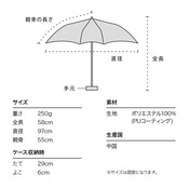 【雨の日も使える日傘(晴雨兼用)】 この製品は日傘としてお使い頂くことを主としていますが、はっ水防水加工を施しているため雨傘としてもお使いいただけます。 ※激しい雨や長時間の雨傘としてのご使用は雨漏りや色落ちの原因となる可能性がございます。 またデザインの特性上、完全な防水はっ水加工が難しい場合があり、雨が染み込むことがありますのでご注意ください。