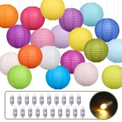 LIHAO 提灯ライト 20色入 20cm 紙ちょうちん ランタン 丸型 無地 夏祭り 飾り付け お盆 祭り イベント パーティー 七夕 飾り デコレーション 装飾 ちょうちん 紙提灯 カラフル
