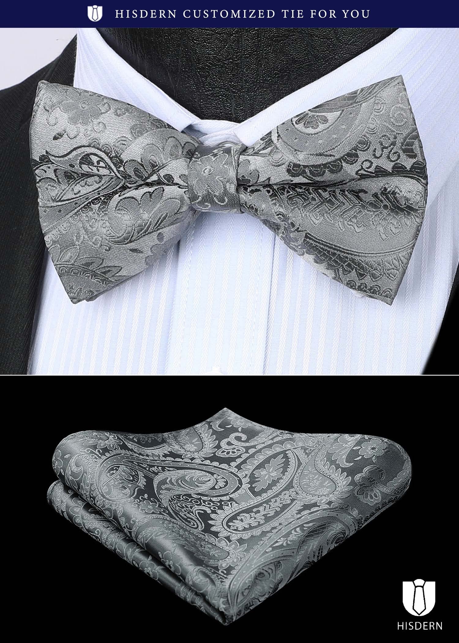 [HISDERN] BR-01 蝶ネクタイワンタッチ チーフ付き 簡単着脱 メンズ ペイズリー ボウタイ セット 結婚式 入学式 披露宴 プレゼント パーティー 色選択