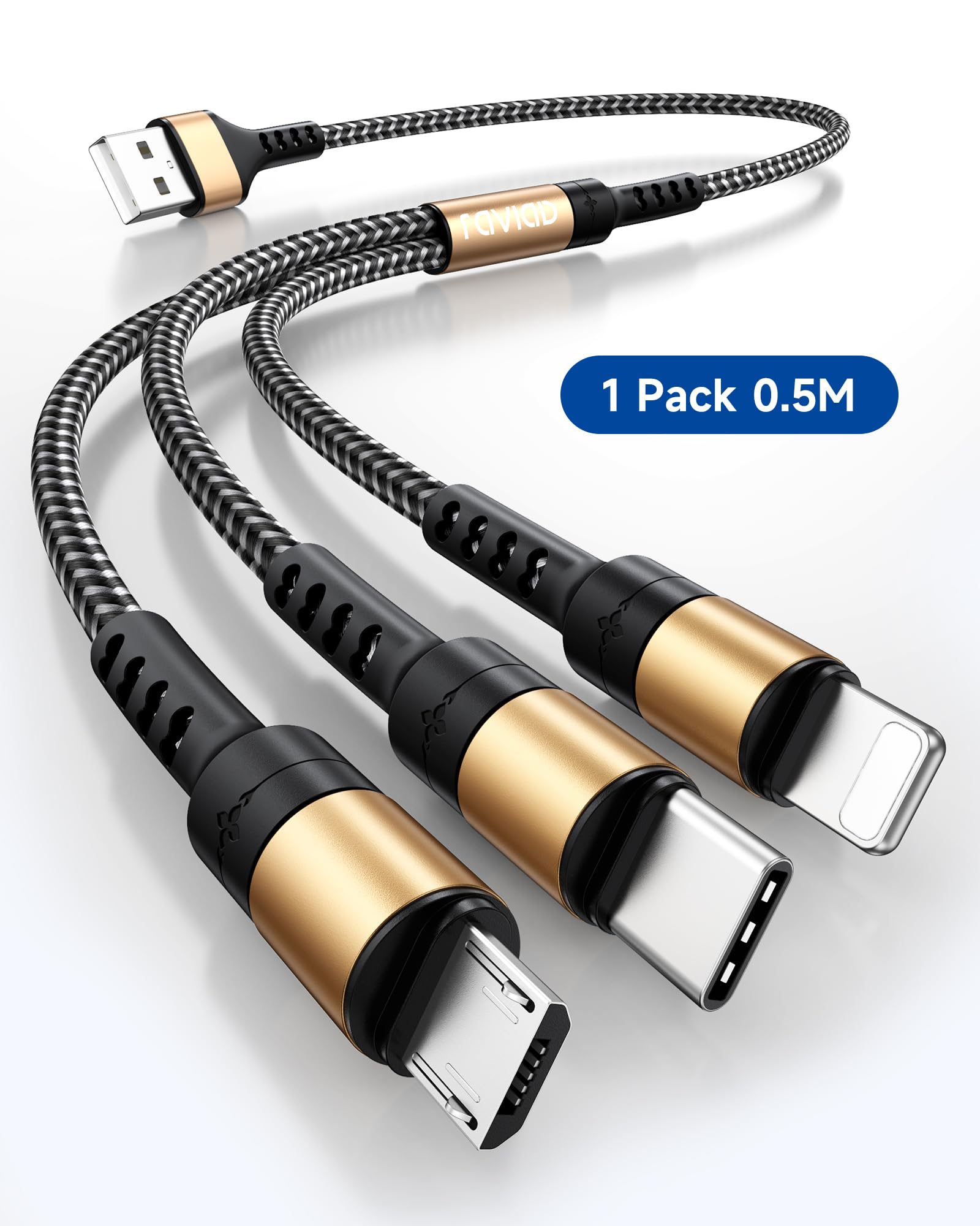 RAVIAD 3in1 充電ケーブル 短い 0.5M USB ケーブル 3A 急速充電 3イン1 充電コード USB Type C ケーブル Micro USB ケーブル Phone 充電ケーブル 3台同時給電可能 Phone Android タイプC Phone 14 13 12 Galaxy S23 S22 21 S20 Kindle 等多機種対応-ゴールド