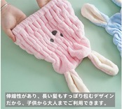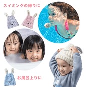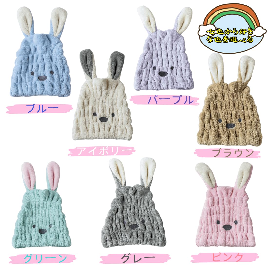✿【詳細】うさ耳が可愛い!マイクロファイバー吸水ドライキャップ。サイズ:頭周り 約40-50cm。深さ:約20cm。重さ:60g。カラー:ピンク、パープル、アイボリー、ブルー、グレー、ブラウン、グリーンの7カラーからお選びいただけます。