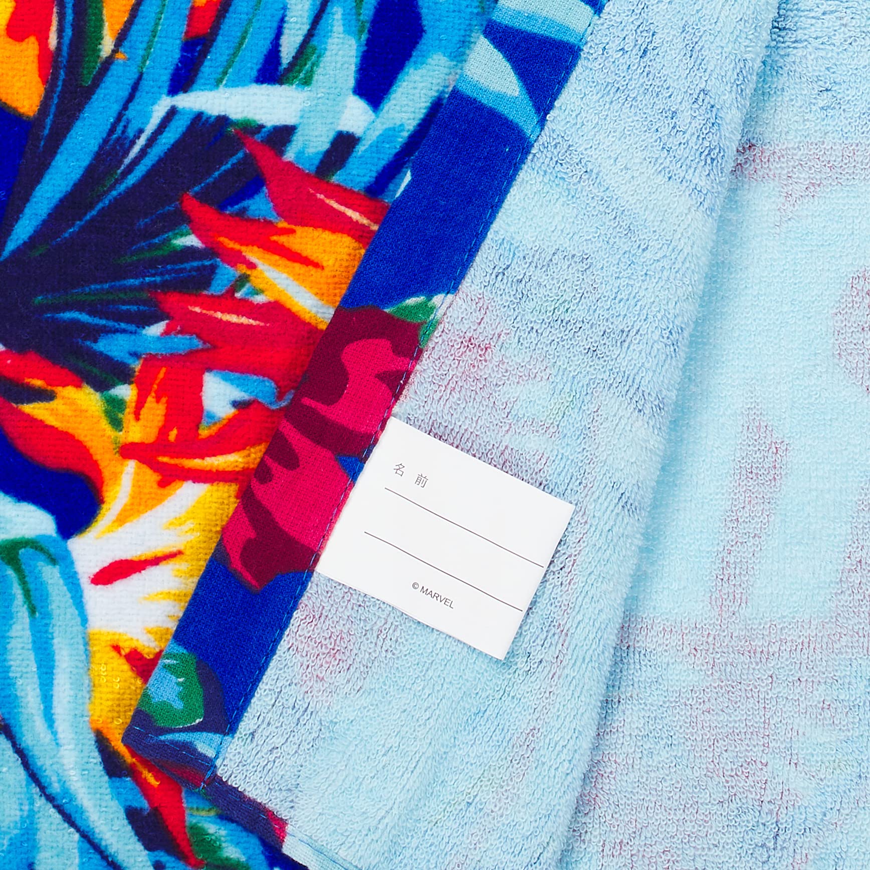 丸眞 100cm丈 巻きタオル ラップタオル Marvel マーベル ネイチャーロゴ ブルー 2505037400 約100×120cm