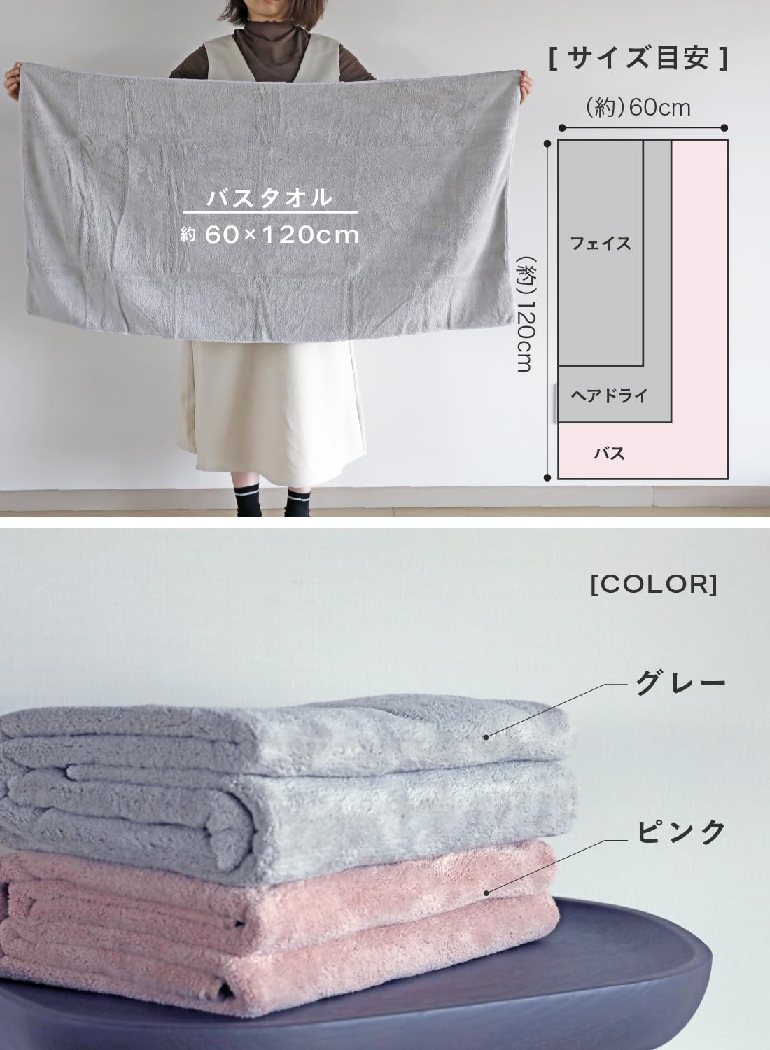 【在庫セール】シービージャパン(CB JAPAN) carari(カラリ) バスタオル 吸水力[5倍]のマイクロファイバー DAY グレー 2枚組 繊維の隙間に素早く吸水 速乾 マシュマロ肌触り ふわふわもちもち 60×120cmカラリデイ | ニコニコSHOP