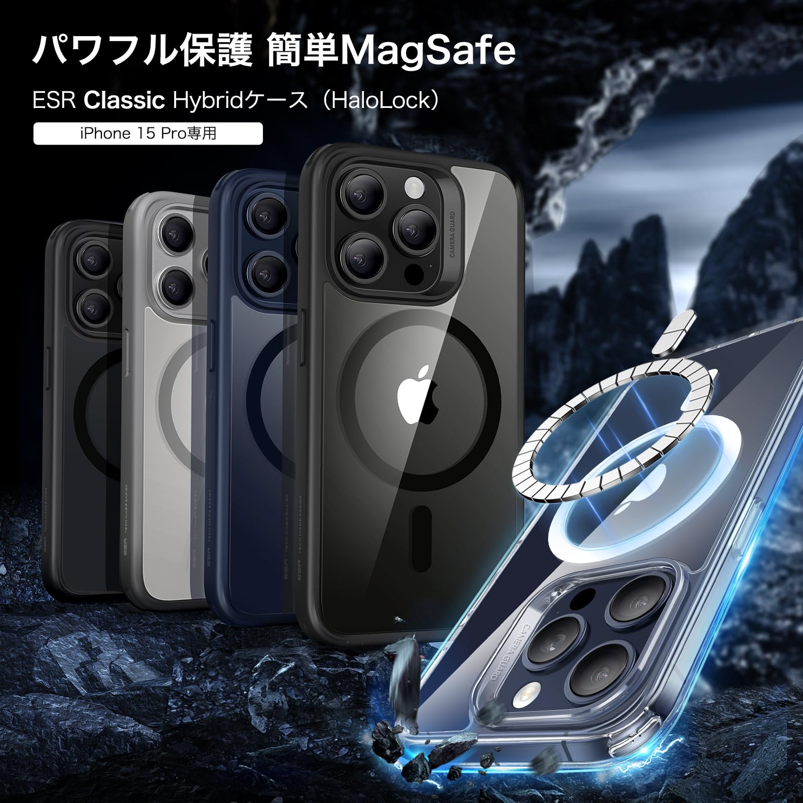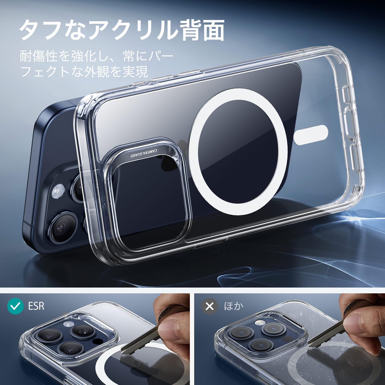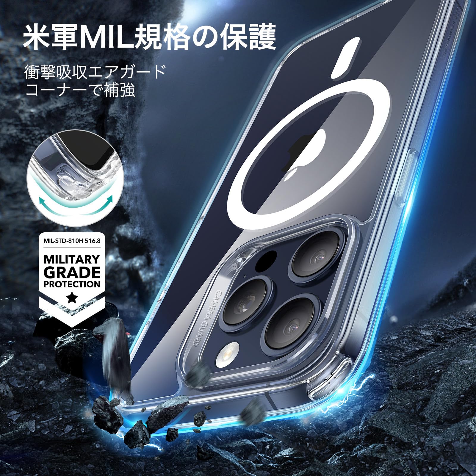 iPhone15ProMax用【米軍MIL規格・Magsafe対応】ESR ケース ワイヤレス充電対応 いphone15promax ケース マグセーフ 指紋防止 黄変防止 強い磁力 落下防止 iphone15promaxスマホケース 耐衝撃 傷防止 Classicシリーズ(クリア)