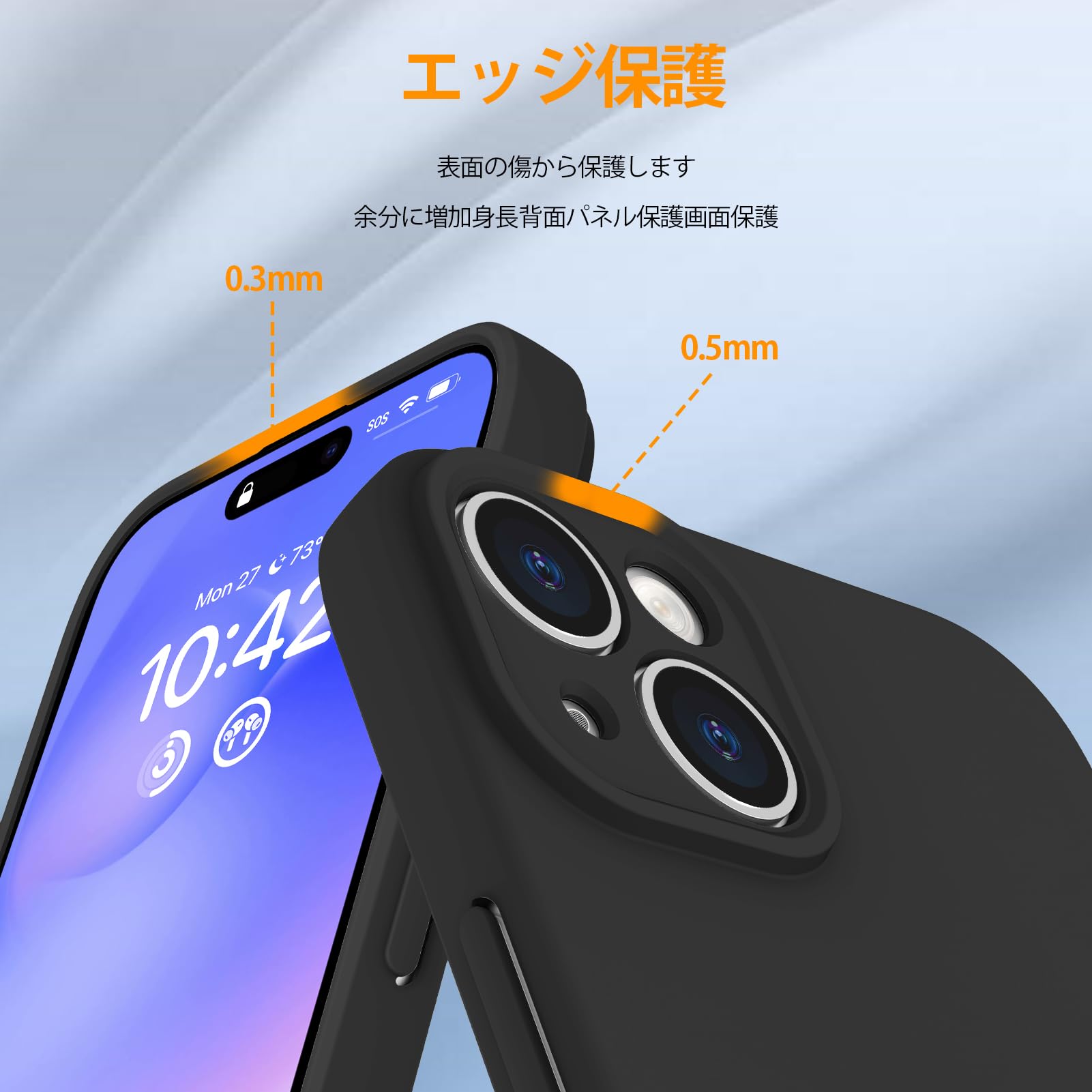 【製品仕様】iPhone 15 用ケースに対応なので、機種を間違いないようご注意下さい。【製品特徴】一体感良く、装着したままでワイヤレス充電に対応できます。【優れる設計】従来のプラスチック製品と比較してゴムに近い素材なので滑りにくく、誤って手から落ちる危険が少なくなりました。ケースの内側は精細なマイクロファイバーを使用し、触り心地がよく携帯電話の背面への擦り傷を防げます,放熱性にも優れています。【スリム設計】携帯電話の美しさを損なわないスリムなデザインながら、不意の落下や衝撃からしっかり保護します。装着感と耐久性備えて、変色変形しにくくなっています。シルクのように上品でマットな質感を持ちながら、傷に対しても強い。【レンズ・画面保護】縁が高く、カメラレンズや画面が直接床面にぶつかりにくい設計です。携帯電話を落とした時も、大切なレンズや画面を護ります。