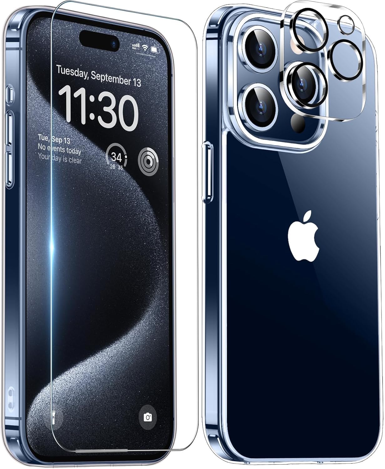 XIWXI iPhone15Pro 用 ケース クリア 耐衝撃 カメラレンズ保護付き アイフォン15Pro用 米軍MIL規格 ストラップホール付き 耐久性 黄変防止 アイホン15プロ用 ワイヤレス充電対応 あいふぉん15Pro用 SGS認証 スマホケース カバー