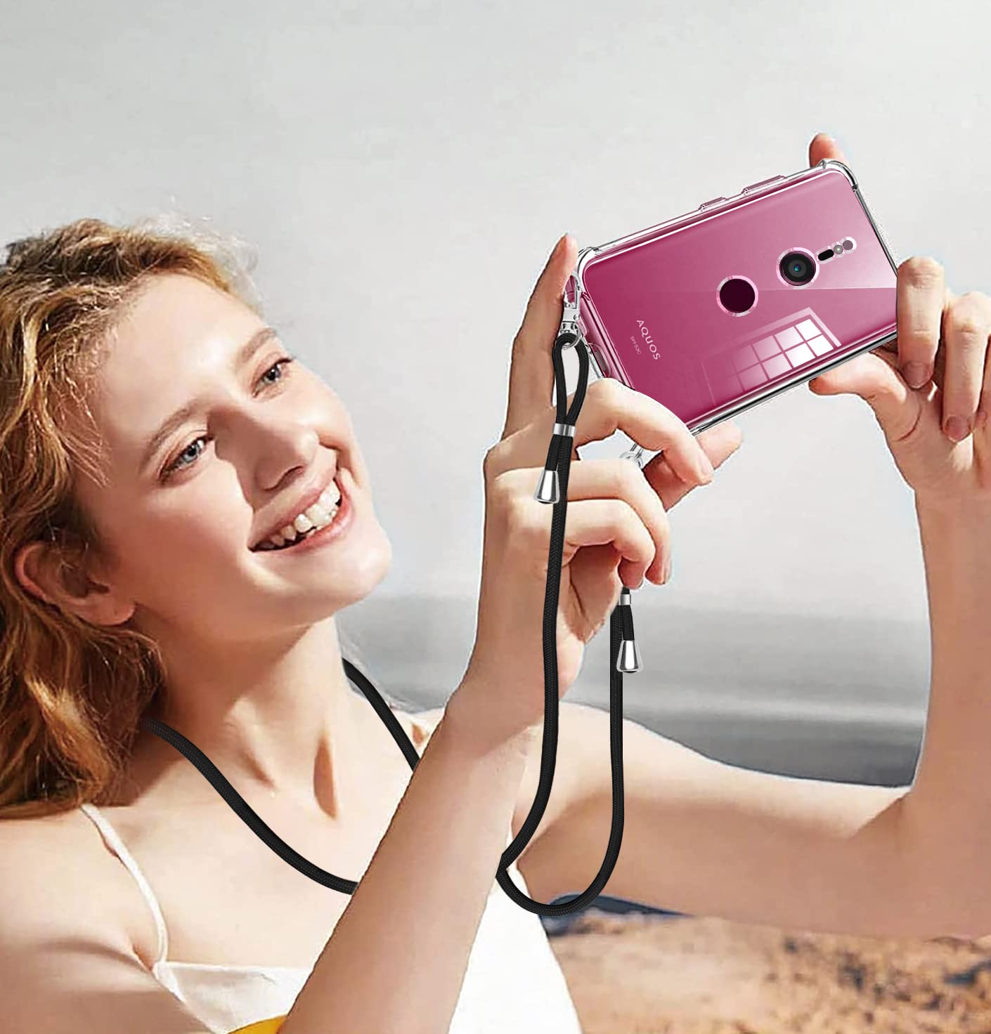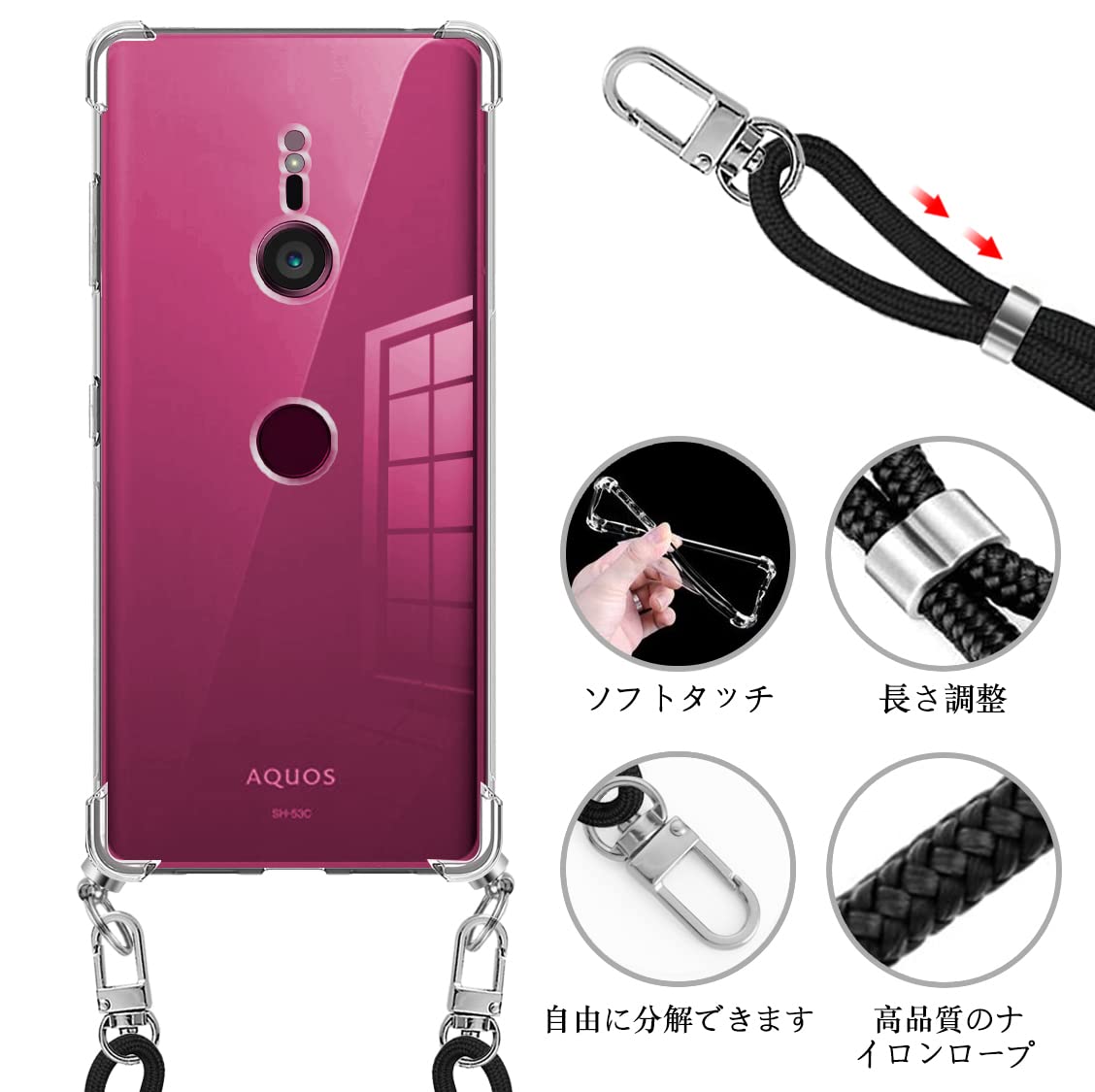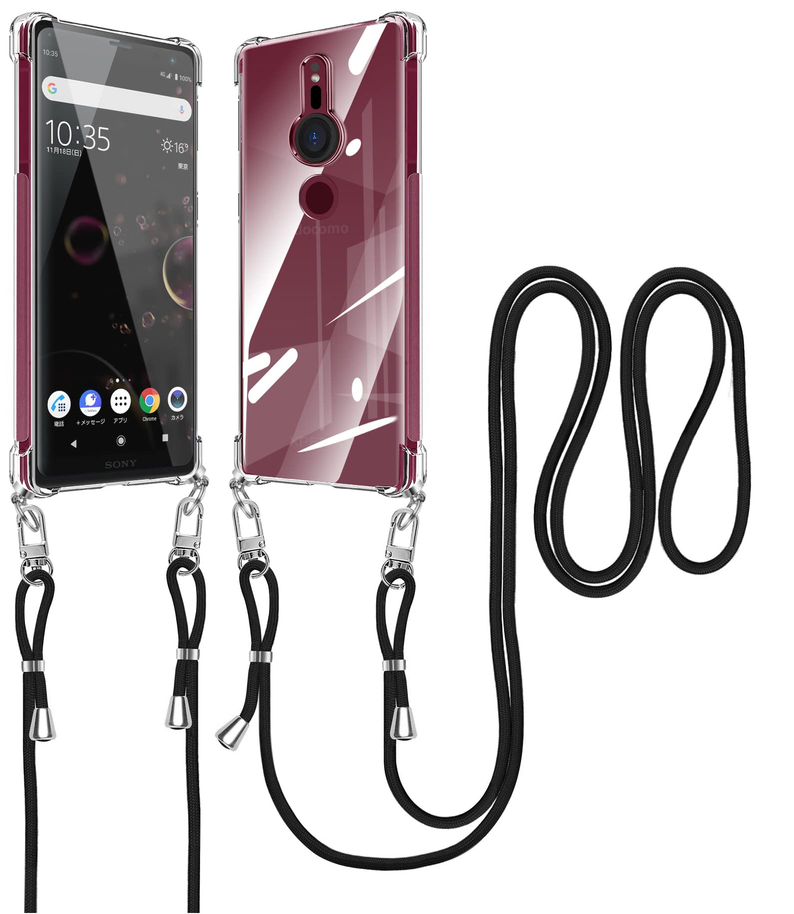 【特価セール】Xperia XZ3 ケース ショルダー クリア SO-01L マホケース SOV39 カバー ストラップ付き 肩掛け 斜めかけ エクスペリアXZ3 縄掛けケース 縄掛け TPU 薄型 軽量 取り外し可能 落下防止 柔軟 【透明】 | ニコニコSHOP