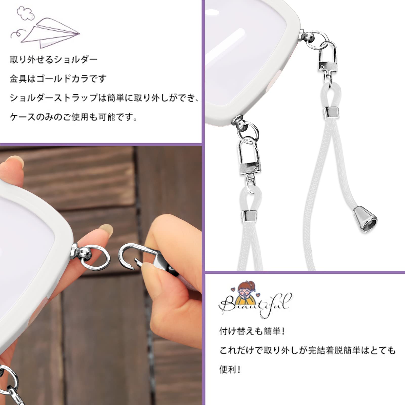 【使いやすさ・長さ調整可能】柔らかいナイロンストラップで首を快適に保ち、金属製のアジャスタブルエンドで、快適な長さに調整できます、手を自由に、ストラップの全長は1.3メートルです。ストラップを取り外して、電話ケースを単独で使用できます。