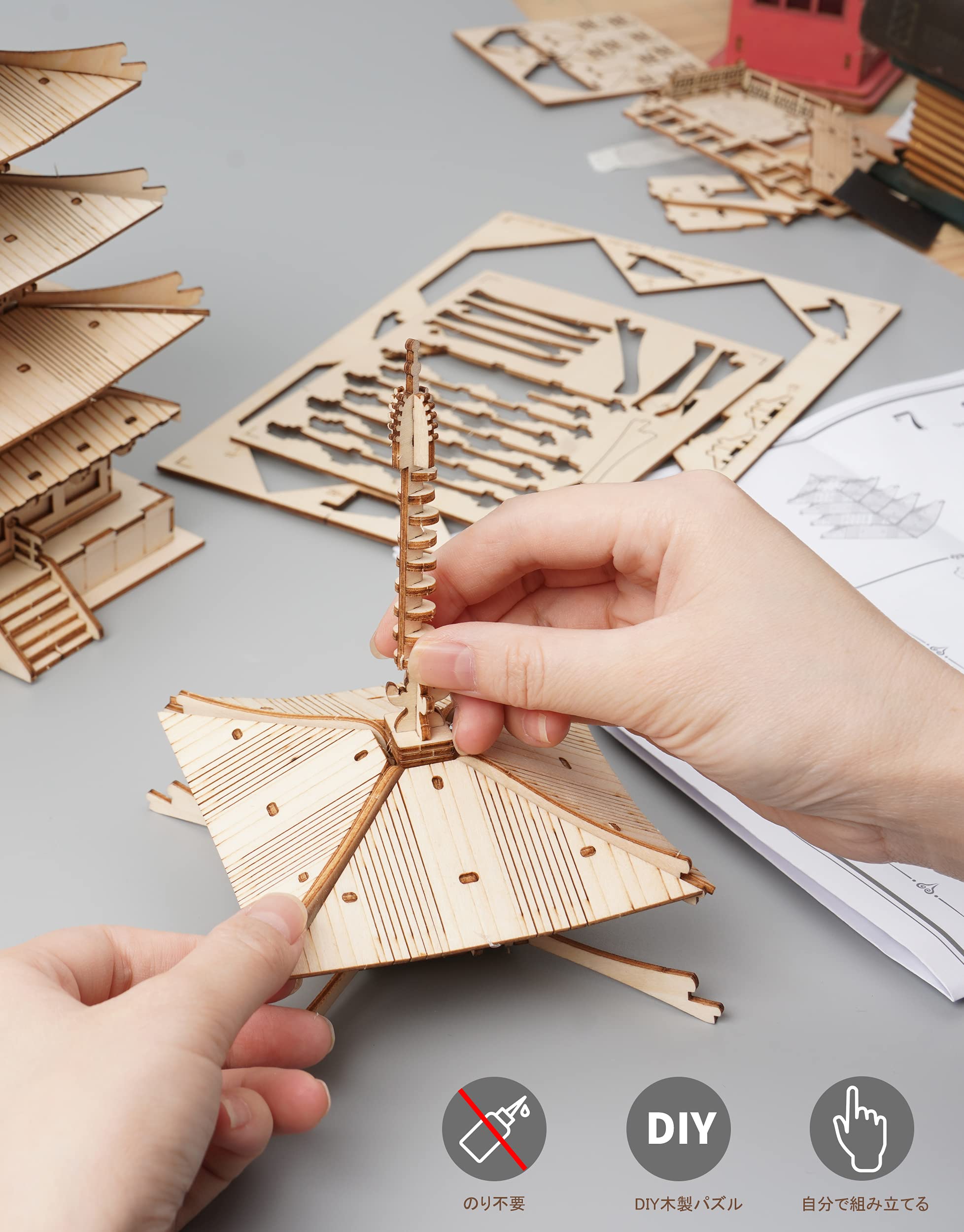 【数量限定】Robotime 立体パズル 木製パズル 3dパズル 工作キット DIY クラフト 模型製作キットおもちゃ 知育玩具 子供 大人 ギフト 誕生日 クリスマス プレゼント 最高の贈り物 法隆寺 五重の塔 | ニコニコSHOP