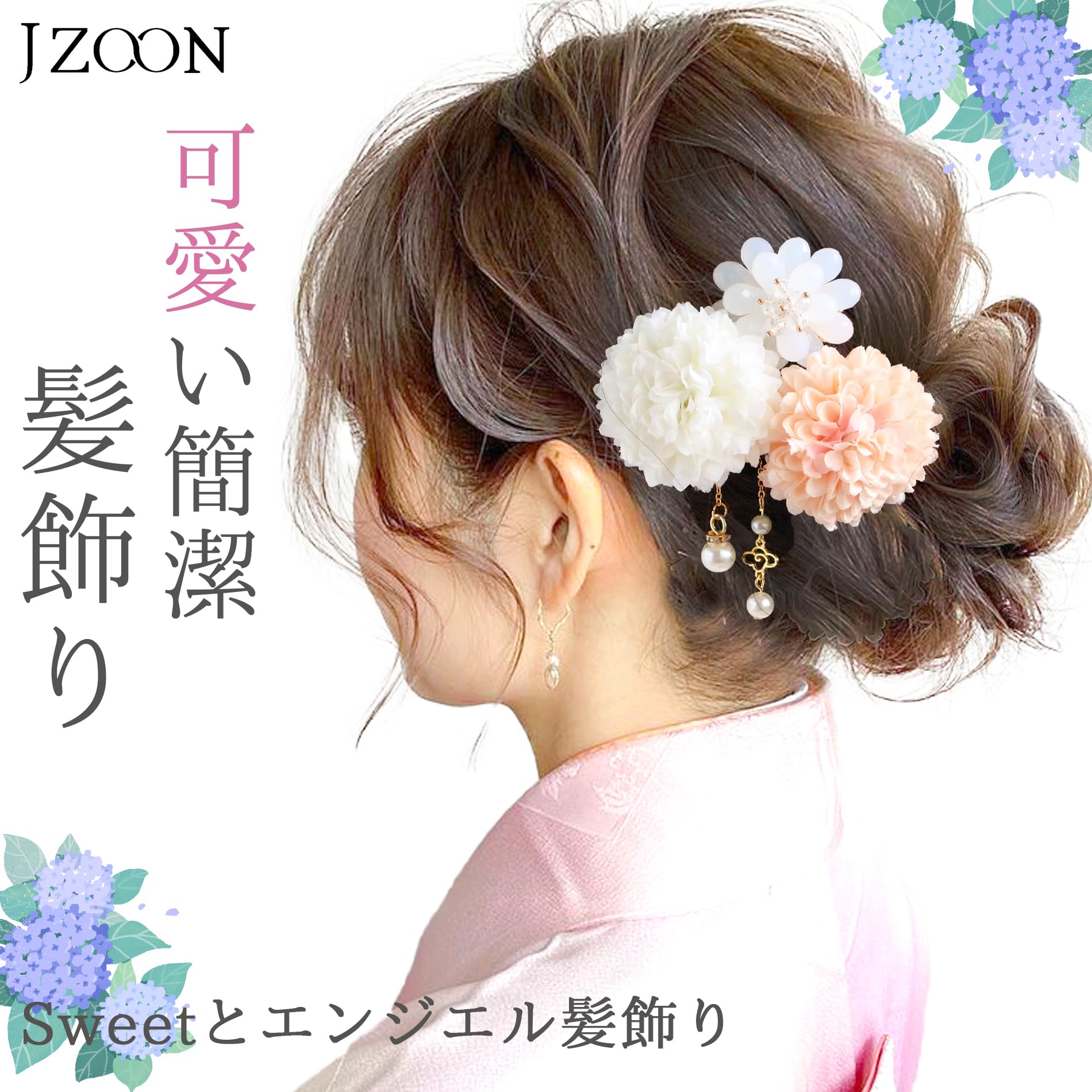 【数量限定】[JZOON] 髪飾り3点セット 花 浴衣 成人式 七五三 卒業式 花火大会 ピンポンマム パール ヘアアクセサリー かわいい 振袖 袴 成人式 卒業式 前撮り 結婚式 七五三 二次会 着物 和服 浴衣 花火大会 ピンク 紫 全12選 | ニコニコSHOP