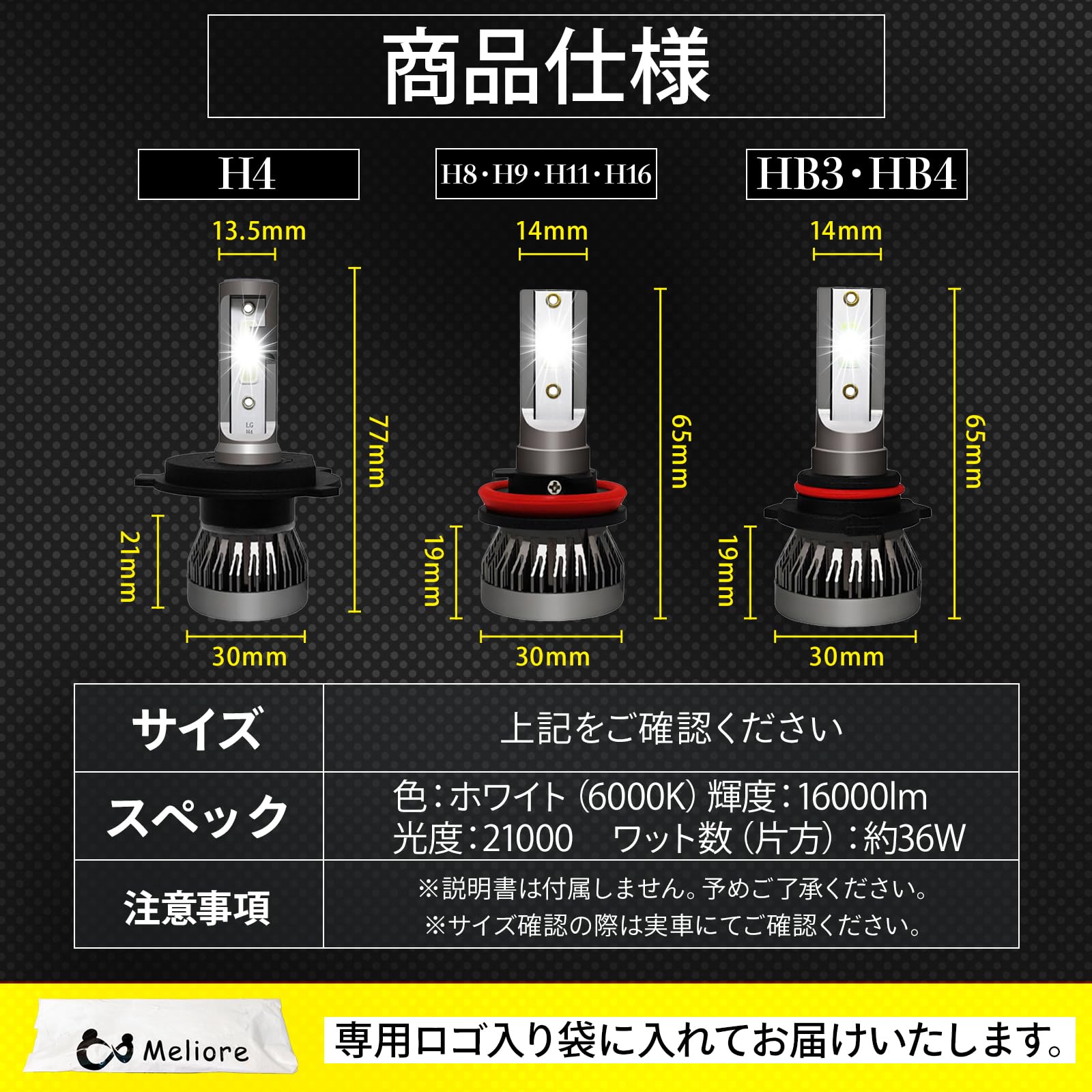 Meliore フォグランプ LED 9005 HB3 爆光 ヘッドライト フォグ バルブ 車検対応 車 12V 6000K 16000lm 白 ホワイト