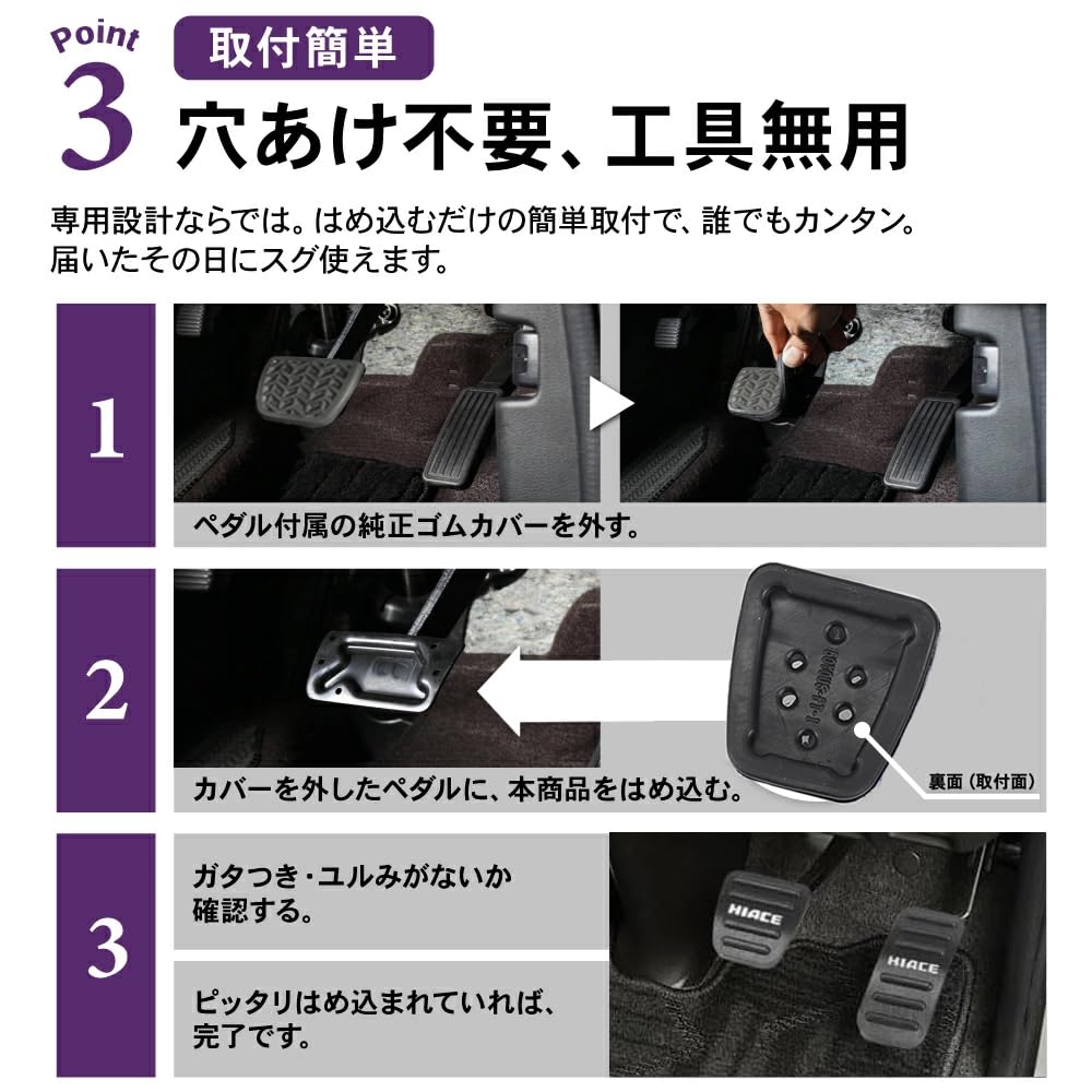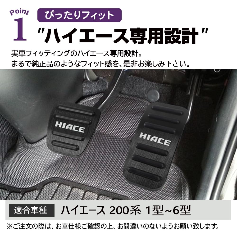 SAWAKAKI ハイエース 200系に専用設計 1型~6型 ロゴ付き アルミアクセルペダル ブレーキペダルカバー 2個セット(ブラック)
