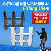 【便利な3連ロッドホルダー】釣りの便利グッズ、樹脂製で軽量な3連ロッドホルダーです。PVC製で軽量かつ耐候性があり、錆びや劣化もなく丈夫さが持続します。