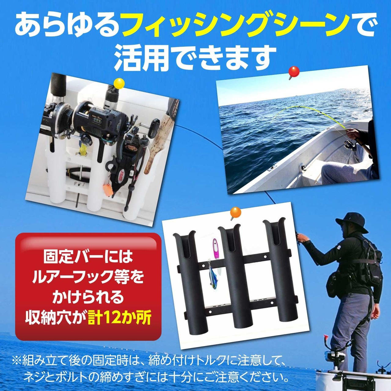 固定の際締めすぎますとPVC樹脂製なので割れる場合があります。締め付けトルクに注意して、ネジとボルトの締めすぎには十分にご注意ください。
