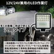 【12V/24V兼用のLED作業灯。多くの車種でLEDワークライトとして使える汎用タイプ】作業用ライトは12V-24Vどちらも使用可。一般自動車はもちろんトラック用品、作業車、作業用として使えます。バイク、トラック、フォークリフト、オフロード車、ダンプ、スノーモービル、除雪機、重機、建設機械、工事車両、農業機械、船舶、漁船などのヘッドライト、フォグランプ、投光器、補助灯として多様に使えます。