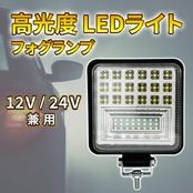 【商品情報】サイズ:約106mm×約106mm×約20mm。重量:約172g。素材:アルミニウム&LED。動作電圧:DC9~32V(12v-24v兼用)。光源:3030。ルーメン:12600LM。LED電圧:126W。色温度:6,500K。動作温度:-40~85℃。【同封内容】本体。取り付け金具。取り付けボルト。