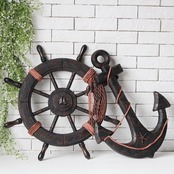 木製 舵輪 錨 アンティーク 海賊 インテリア 御洒落 船 オブジェ レトロ 舟 樽 ガーデニング ガーデニング雑貨 店舗用看板 ハワイ ビンテージ アパレル (M 錨 舵輪 セット)