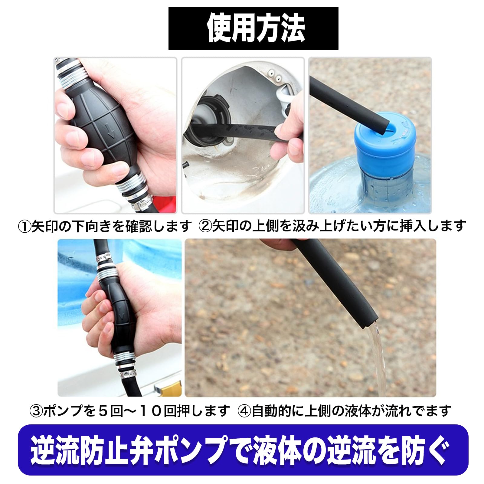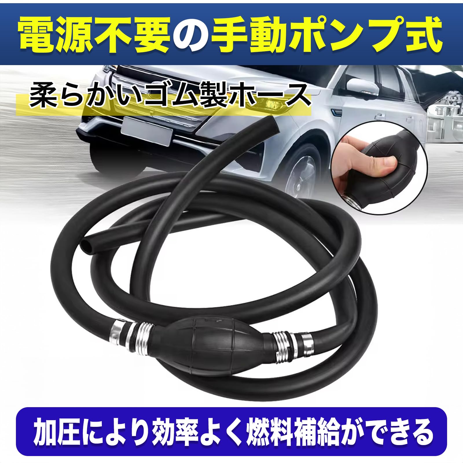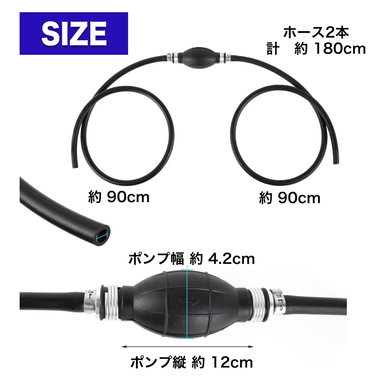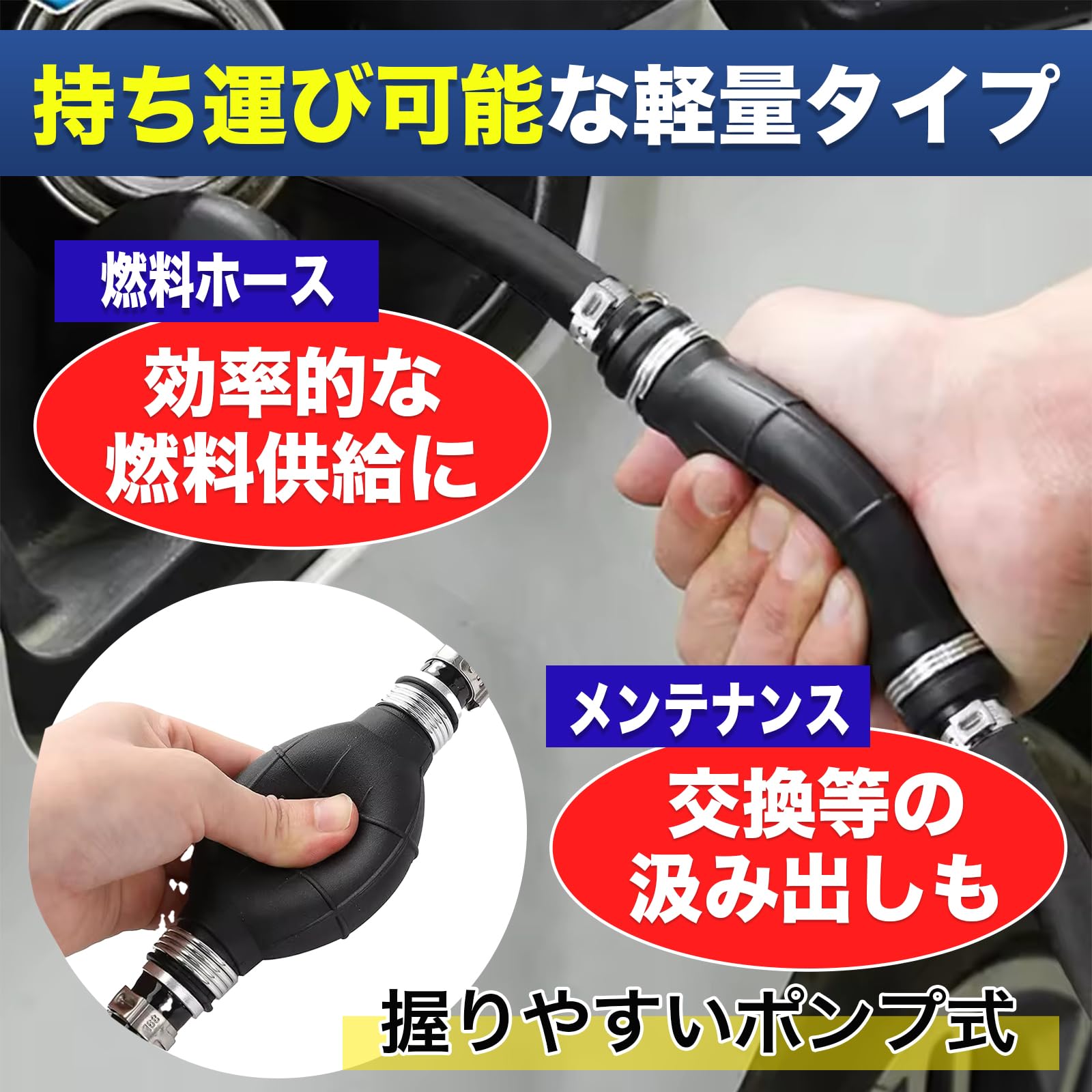 【効率的な供給】握りやすいゴム製ホースを使用し、加圧することでガソリンやオイル、水槽内の水を効率よく供給・交換可能です。