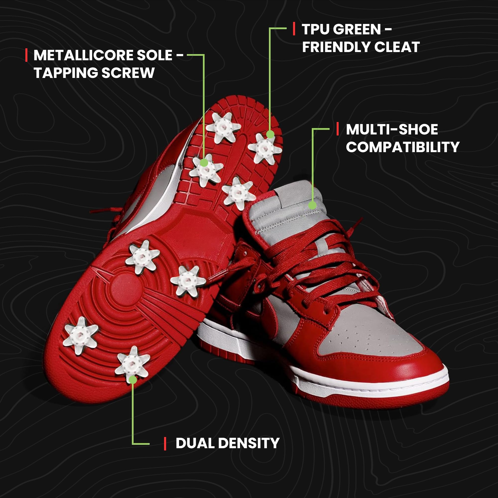 【Golfkicksとは?】 ゴルフキックスは、お気に入りのスニーカーをゴルフシューズに変身させる!! 取付け簡単なスパイクDIYキットです。