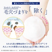 【洗顔特徴成分ファイバースクラブ】毛穴より細いため、毛穴上部にもぐりこんで角栓や毛穴つまりを絡め取ります。毛穴内の皮脂が排除され、ニキビの原因が減り、ニキビを防ぎます。