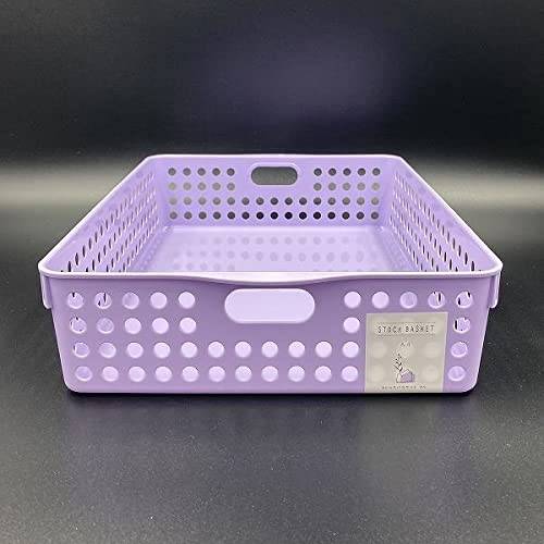 このストックバスケットは、A4サイズの収納が可能な長方形のデザインで、ライトパープルのモダンなスタイルをお楽しみいただけます。サイズは26.4cm x 35.3cm x 8.1cm、重量は0.19kgで、プラスチックの取っ手がついています。事務所などのスペースにぴったりで、ストレージとしても便利に使えます。