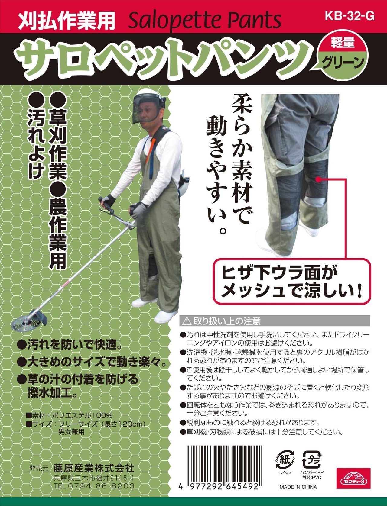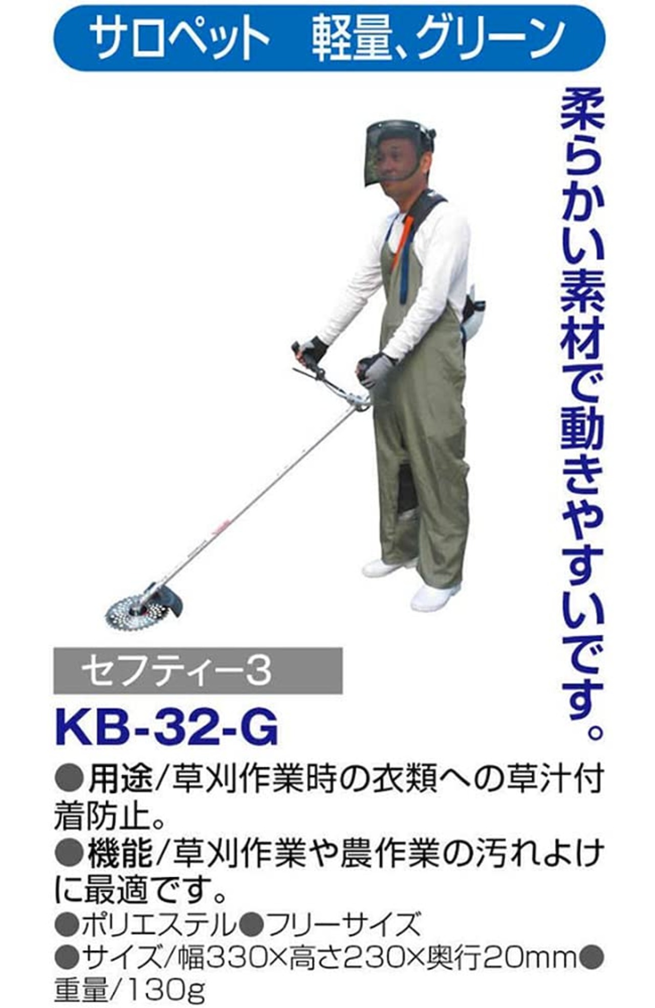 セフティー3(Safety-3) 草刈 刈払 農作業用 サロペットパンツ 軽量 グリーン 男女兼用 フリーサイズKB-32-G