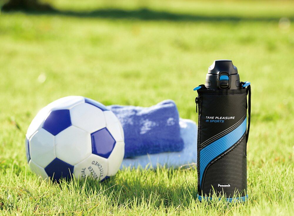 サッと水分補給ができる直飲みボトル。持ち運びラクラク、専用ポーチ付き