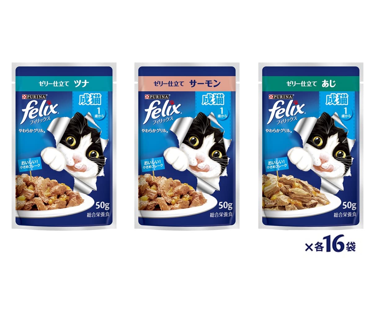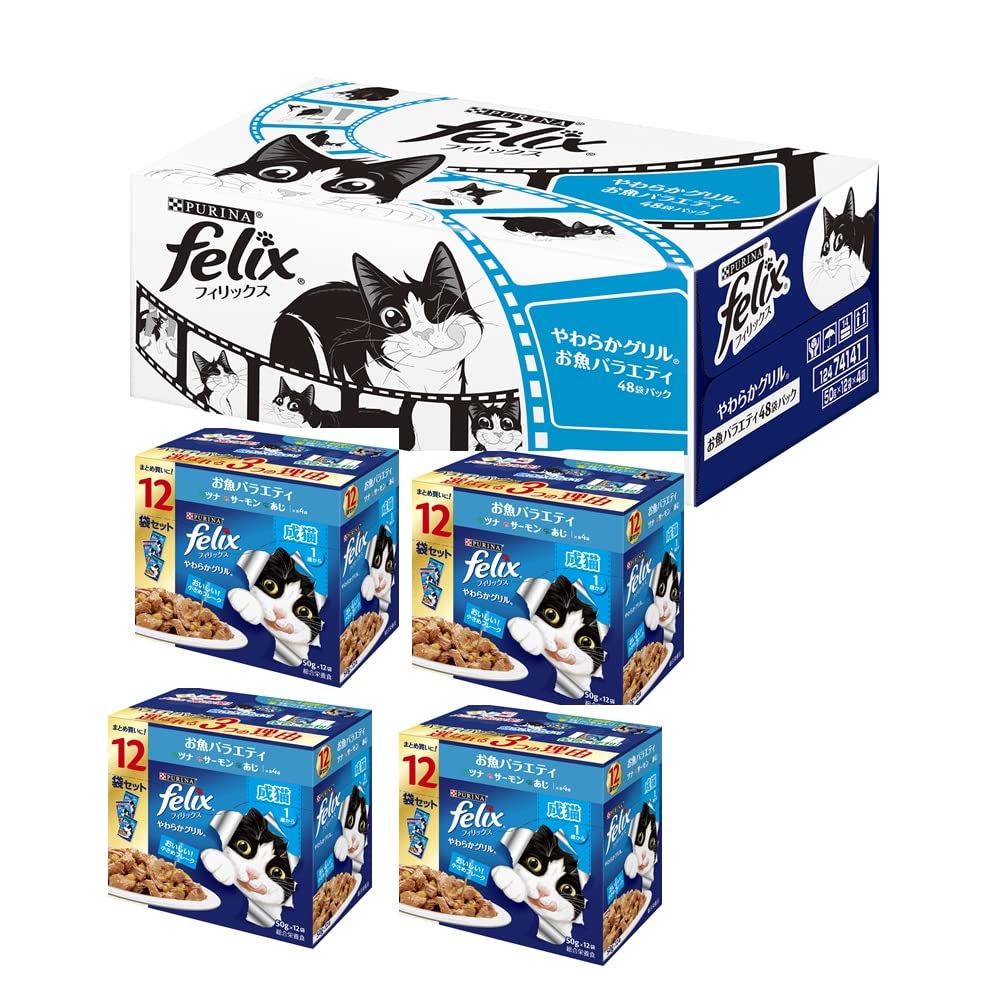 フィリックス パウチ やわらかグリル 成猫 お魚バラエティ(ツナ・サーモン・あじ) 50gx48袋入り(12袋x4箱)