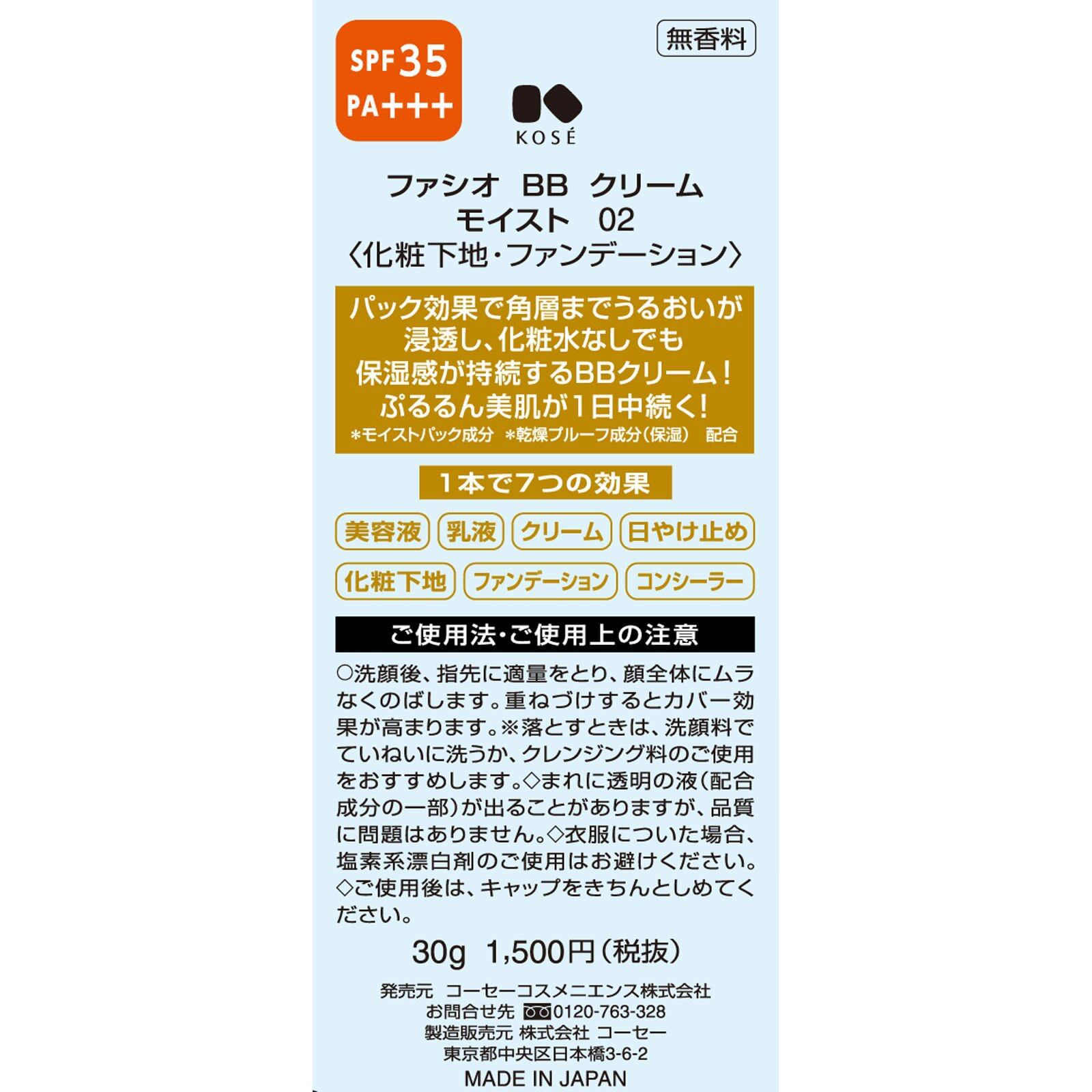 FASIO(ファシオ) BB クリーム モイスト 自然な肌色 02 30g