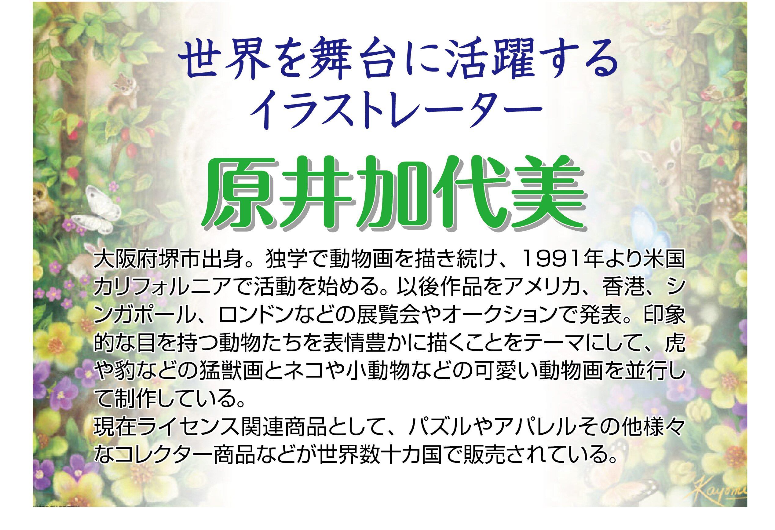 原井加代美の描く、ふわふわで可愛いフクロウの親子。月夜にお花見しながら、楽しい時間を過ごす姿がとっても素敵。