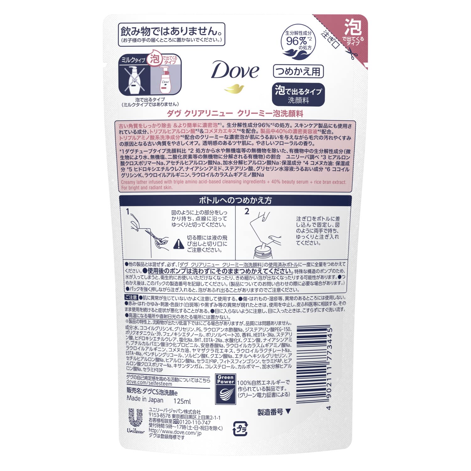 Dove 【まとめ買い】 (ダヴ) クリアリニュー クリーミー泡洗顔料 詰め替え用 125ml×3個 リーフレット付き