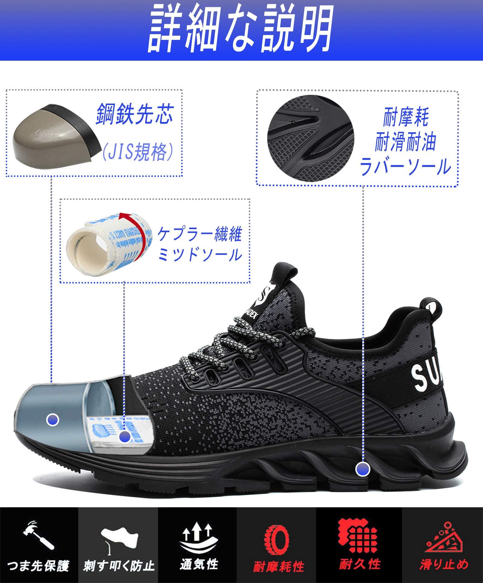 【新着商品】[SUADEX] 安全靴 作業靴 メンズ あんぜん靴 レディース 鋼先芯 セーフティーシューズ 耐滑 耐摩耗 通気性 つま先保護 工事現場 ワークシューズ 釘踏み抜き防止 | ニコニコSHOP