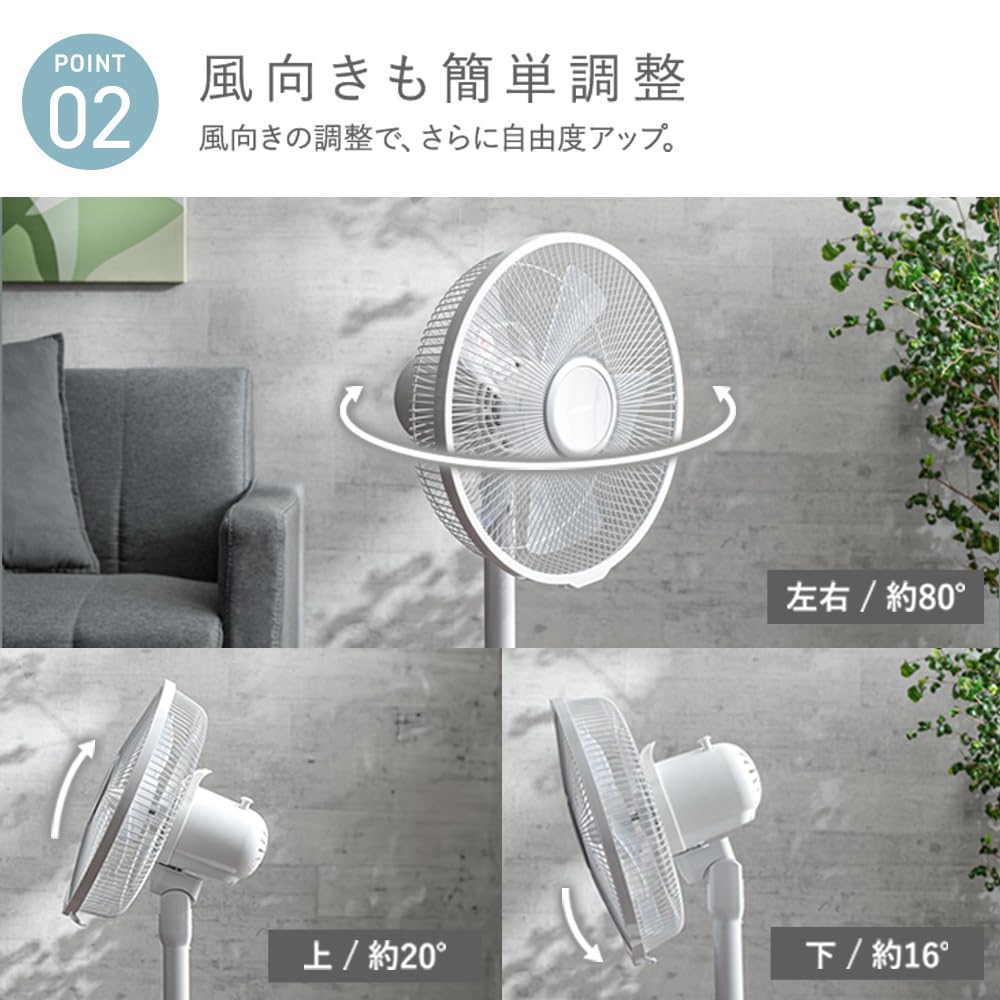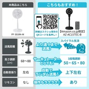 風量調節:3段階(弱/中/強)、高さ調節:約68~88cm、切タイマー:30/60/90/120/150/180min、首振り:○