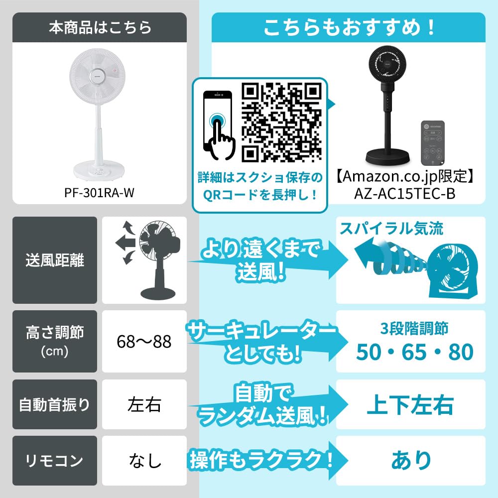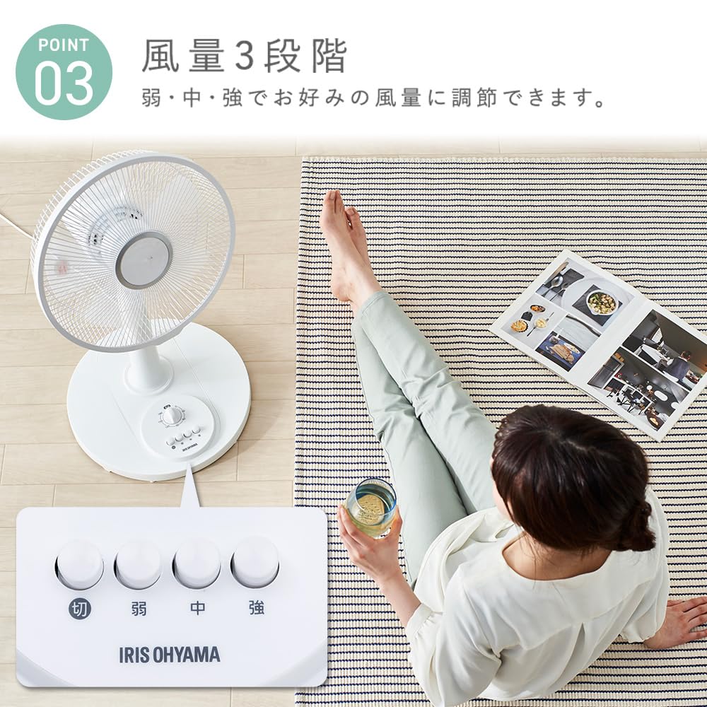 【節電対策】 アイリスオーヤマ 扇風機 首振り 風量3段階 タイマー機能付き 換気 リビング扇 ホワイト PF-301RA-W