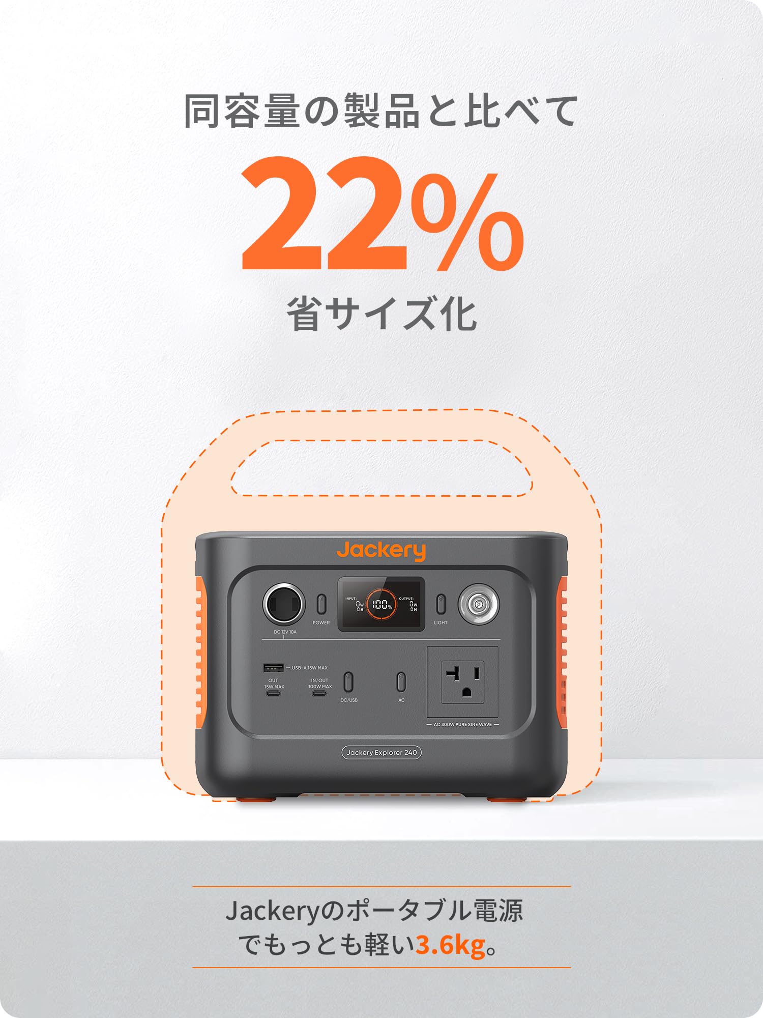 【在庫処分】Jackery (ジャクリ) ポータブル電源 240 New 256Wh リン酸鉄 長寿命 定格出力300W 瞬間最大600W 60分急速充電 スマホ タブレット充電用 モバイルバッテリー コンパクト UPS機能 アプリ遠隔操作 純正弦波 AC100V 50Hz/60Hz 車中泊 停電対策 防災対策 ジャクリ [型番:JE-240A] | ニコニコSHOP