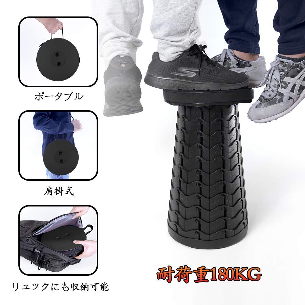 【使い方簡単、持ち運び便利】使い方簡単:少しひねりを入れながら両端を引くだけでスツールが完成。収納は逆方向に少しひねりを入れながら両端を押すだけで収納可能。また、ストラップ付きで、手に持ってでも、肩に掛けても、便利です。リュックにも収納可能です。