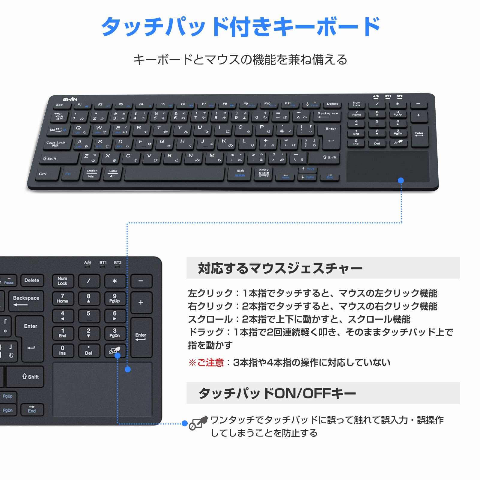 【特価商品】Ewin Bluetooth/USB 無線両対応キーボード ワイヤレスキーボード 無線 2.4G タッチパッド テンキー付き JIS日本語配列 USB接続 レシーバー付き 電池式ノートPC/パソコン/タブレット/スマホ用 Windows/Mac/iOS対応 在宅勤務 テレワーク ブラック | ニコニコSHOP
