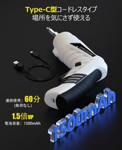 【Type-C充電バッテリー・高輝度LEDライト】過充電保護機能により、電池やモーターを保護してくれるのもポイント。便利なType-c充電式でコンセントは不要で場所を選ばずに使用可能です。大容量バッテリーを搭載し、最大連続使用時間60分でネジを約200本締め付けできます。手元のネジを明るく照らす高輝度LEDライトを搭載して手元が見えにくい暗い場所でも、作業の精度を最大限にアップ、作業のミスなどを軽減できます。
