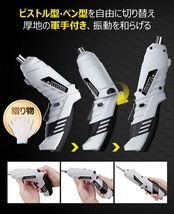 【2種類形態変化ドライバー・丈夫な作業用軍手付き】ワンタッチで簡単に形態変化を実現し、作業に応じて形状をペン型・ピストル型を変えることで、ネジの打ちにくい所や高い所にも作業効率アップ!プロの作業や園芸・アウトドア・DIY・家具組み立てなど幅広く使えて、金属・プラスチック・木材に対応し分野で活躍する。100%純綿製軍手をセットにして、汗を吸いやすい材質を選用し、滑り落ちるのを防いで摩擦力を高めます。