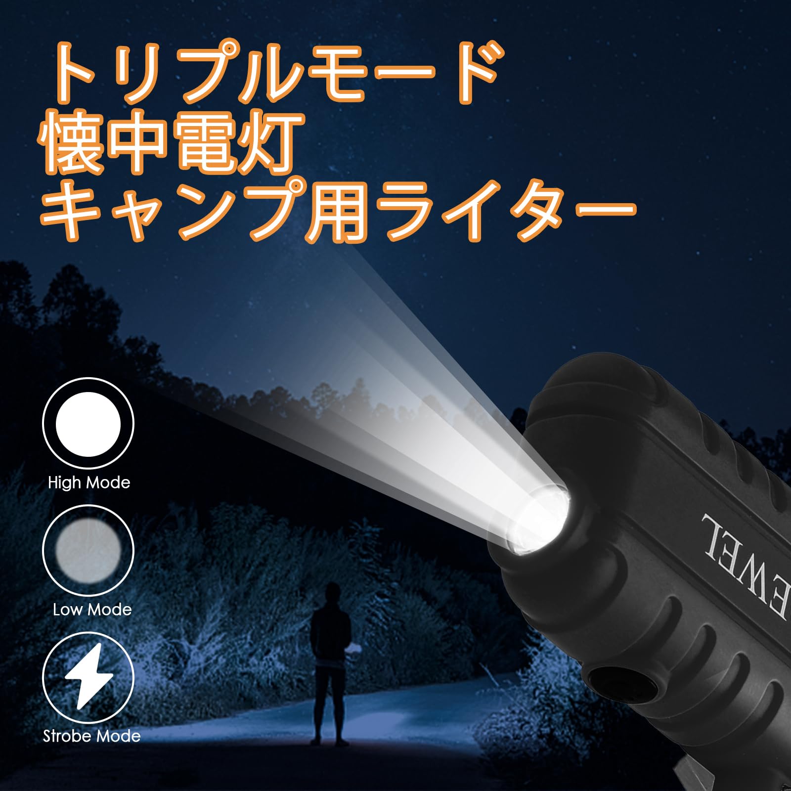 【キャンプ用道具】紐がついていて、バックルには安全笛がついています。脱出バッグにぴったり! ライターハイモード、ローモード、ストロボモード三つのモードがある懐中電灯付き、様々なニーズにお応えします。