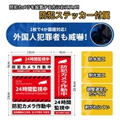 【防犯ステッカー6枚】セキュリティーステッカーの設置は、最も 「 手軽 」「 簡単 」「 安価 」 にできる防犯対策です。防犯ステッカーは侵入してくるであろう場所や窓や車窓、ドアなど防犯カメラが設置できない場所に貼り付けることができます。 防犯カメラと併用すると相乗効果があります。防水加工とお客様のお声を反映した厳選サイズ&デザインを採用し、離れたところからでも目立ちます。付属の防犯ステッカー は、4ヵ国語(日本語・英語・中国語・韓国語)に対応します。グローバル犯罪にも抑止効果を発揮致します!