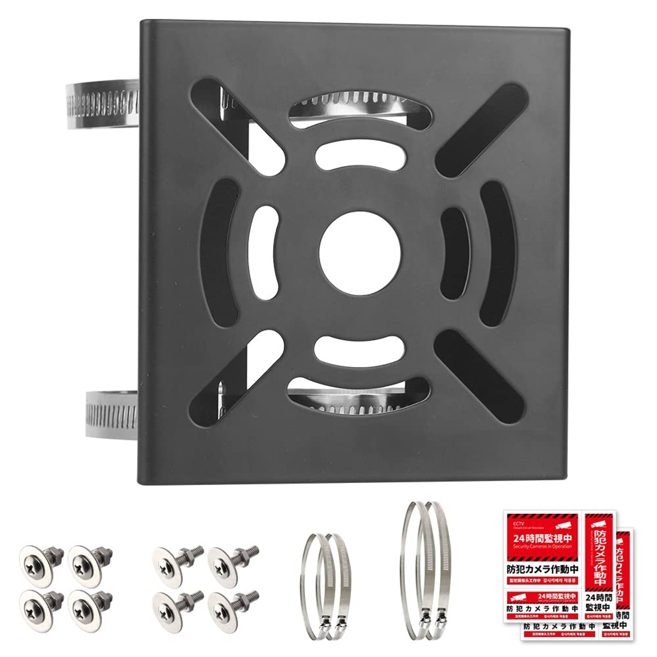 【数量限定】JEBUTU 防犯カメラ 取付金具 雨樋 ポール 取り付け金具 ブラケット スタンド マウント ハウジング 監視カメラ 固定 角柱 円柱 穴あけ不要 黒 【すぐ使える フルセット】 ステンレスバンド 4本 (バンドサイズ直径20cm 直径10cm)/ ボルト セット4式 / 防犯ステッカー 6枚 付属 | ニコニコSHOP
