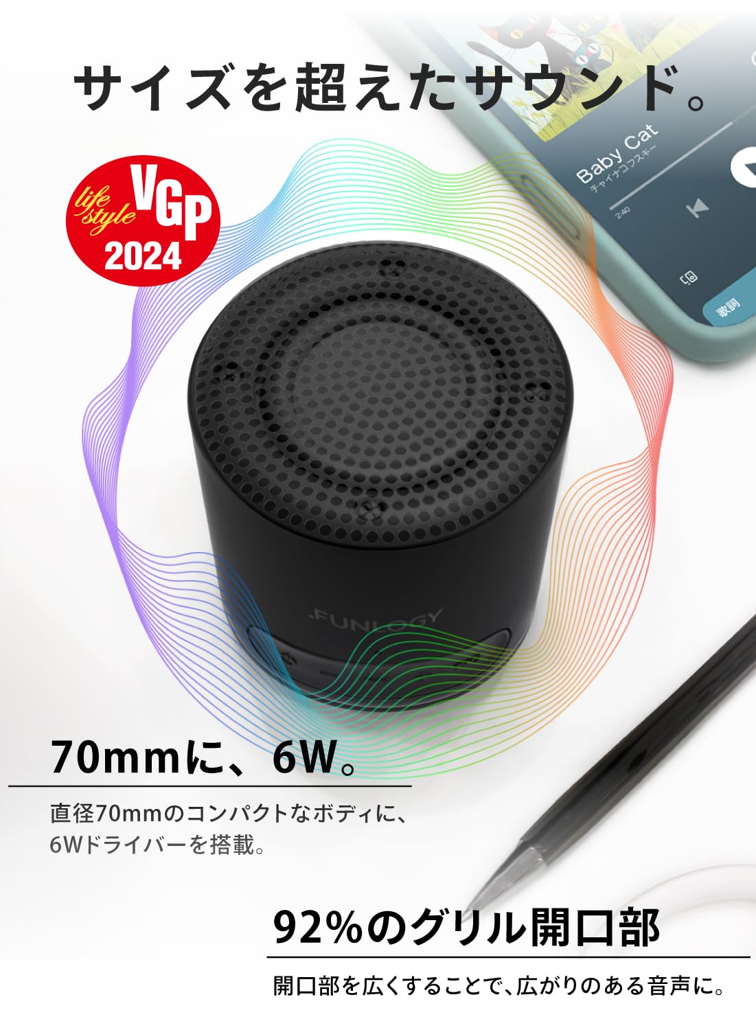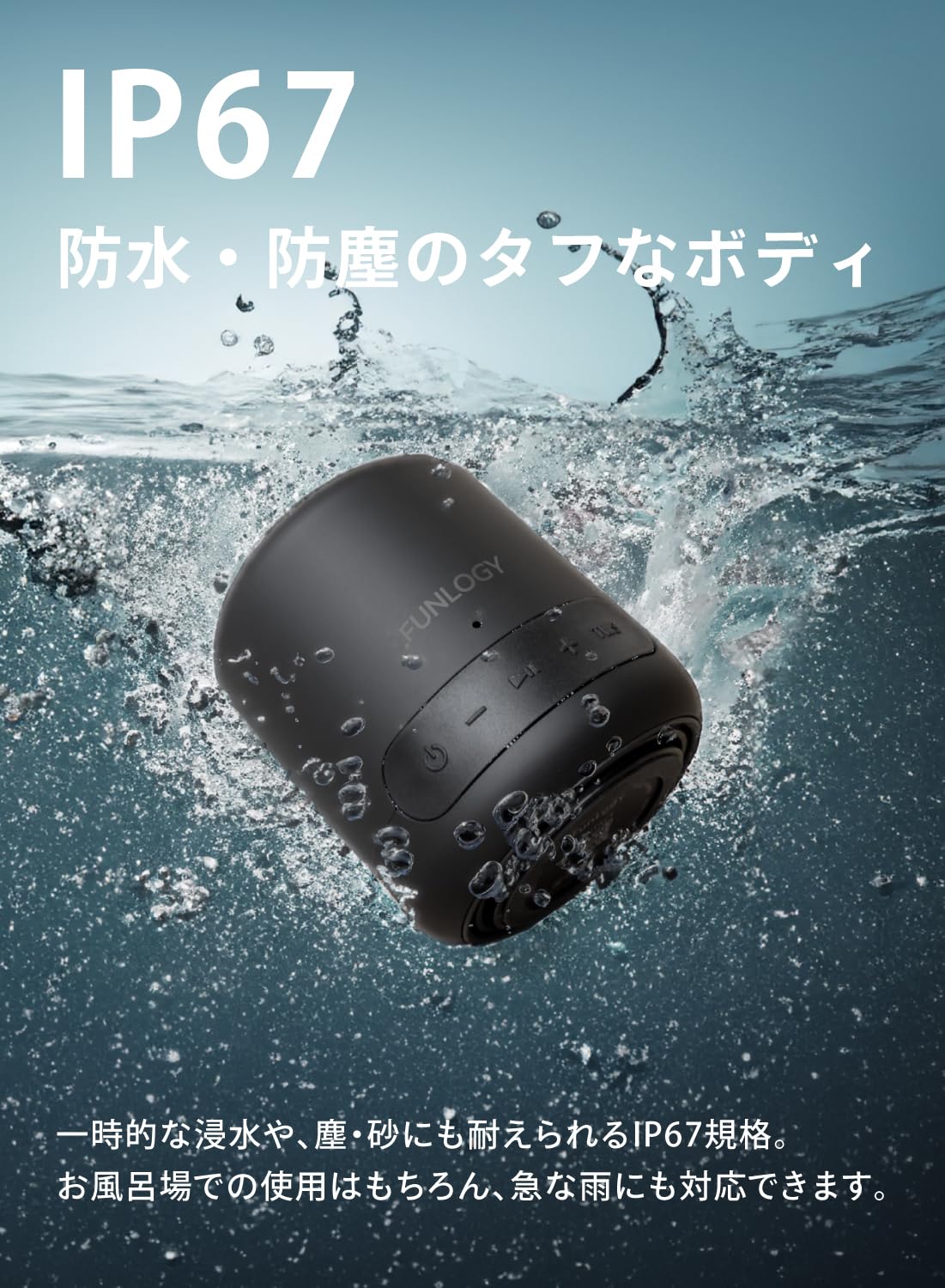 FUNLOGY Portable Mini(スピーカー/ポータブルスピーカー)【VGP2024受賞 / 防水対応/小型/Type-C 充電式/バッテリー 内臓/Bluetooth対応/ワイヤレス / IP67 お風呂 で使える/pc スマホ 接続OK/TWS 対応/日本ブランド/ブラック 】