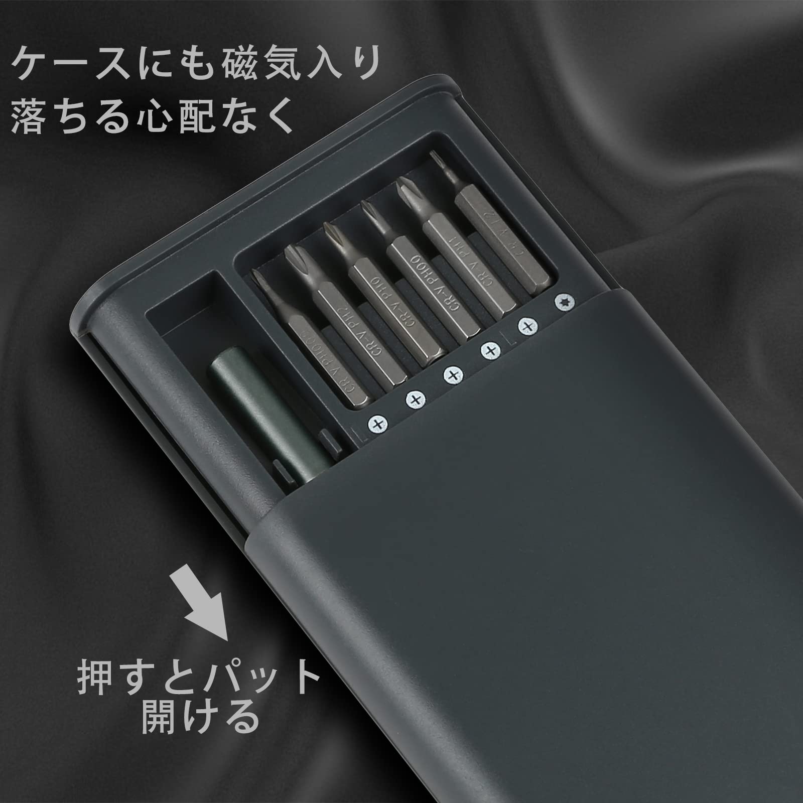 【コンパクト収納・持ち運びやすい】収納ケースも磁石が入り、振ってもビットが落ちにくいので開けた瞬間にビットが落ちる心配もありません。押すとパット開ける収納ケース、開けやすくて軽量で持ち運びやすいです。