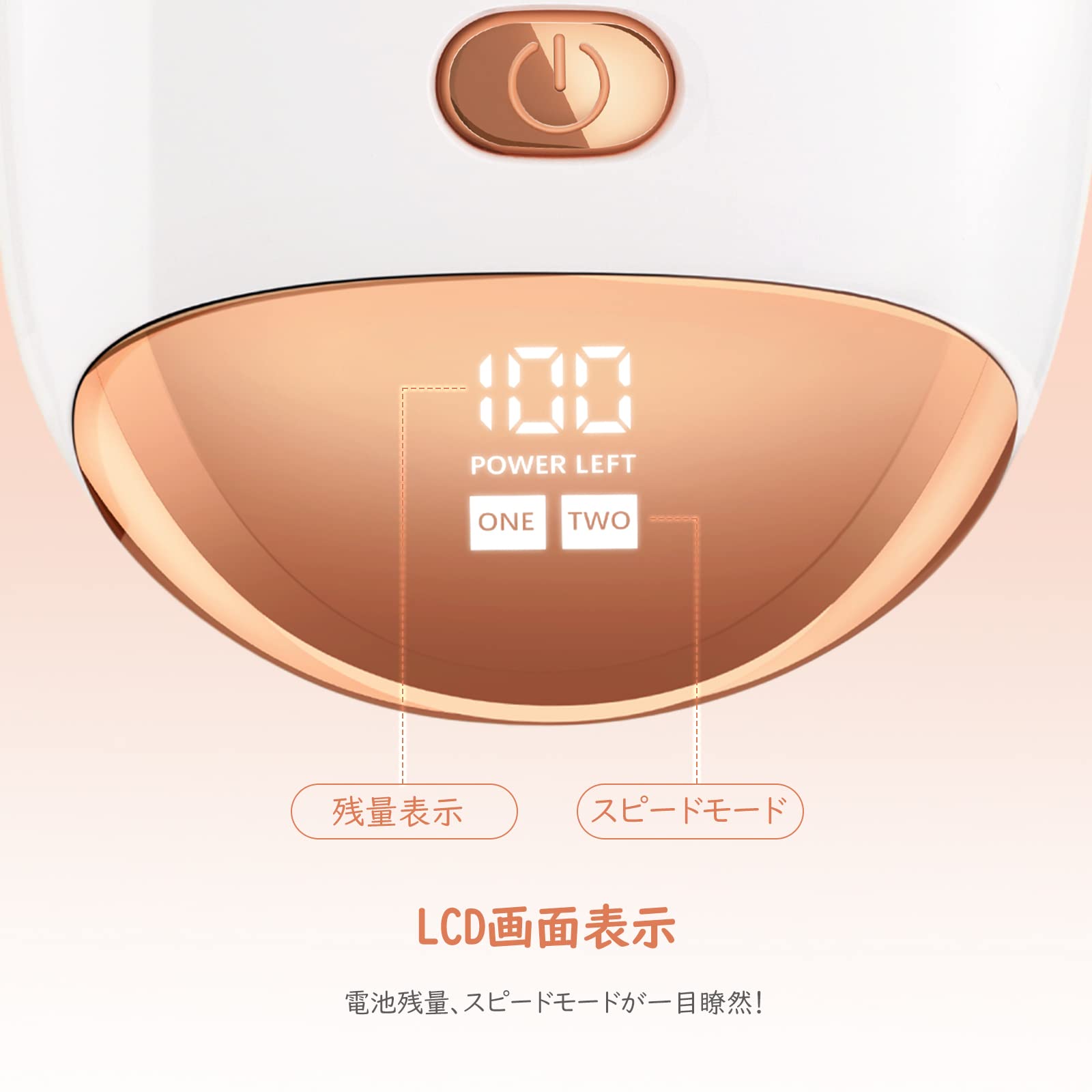 「LCD残量表示&LEDライト付き」 LCDディスプレイが設置され、電池残量、回転速度は一目瞭然で、電源が急に切れる恐れがありません。従来の商品より小柄でおしゃれな設計を取り上げ、女性の手になじみやすい軽量仕様で、外出、旅行、出張などの時は気軽にバッグに入れられ、いつでもどこでも使用できます。照明ライトが付いており、薄暗い環境でも本格の足裏角質ケアできます。