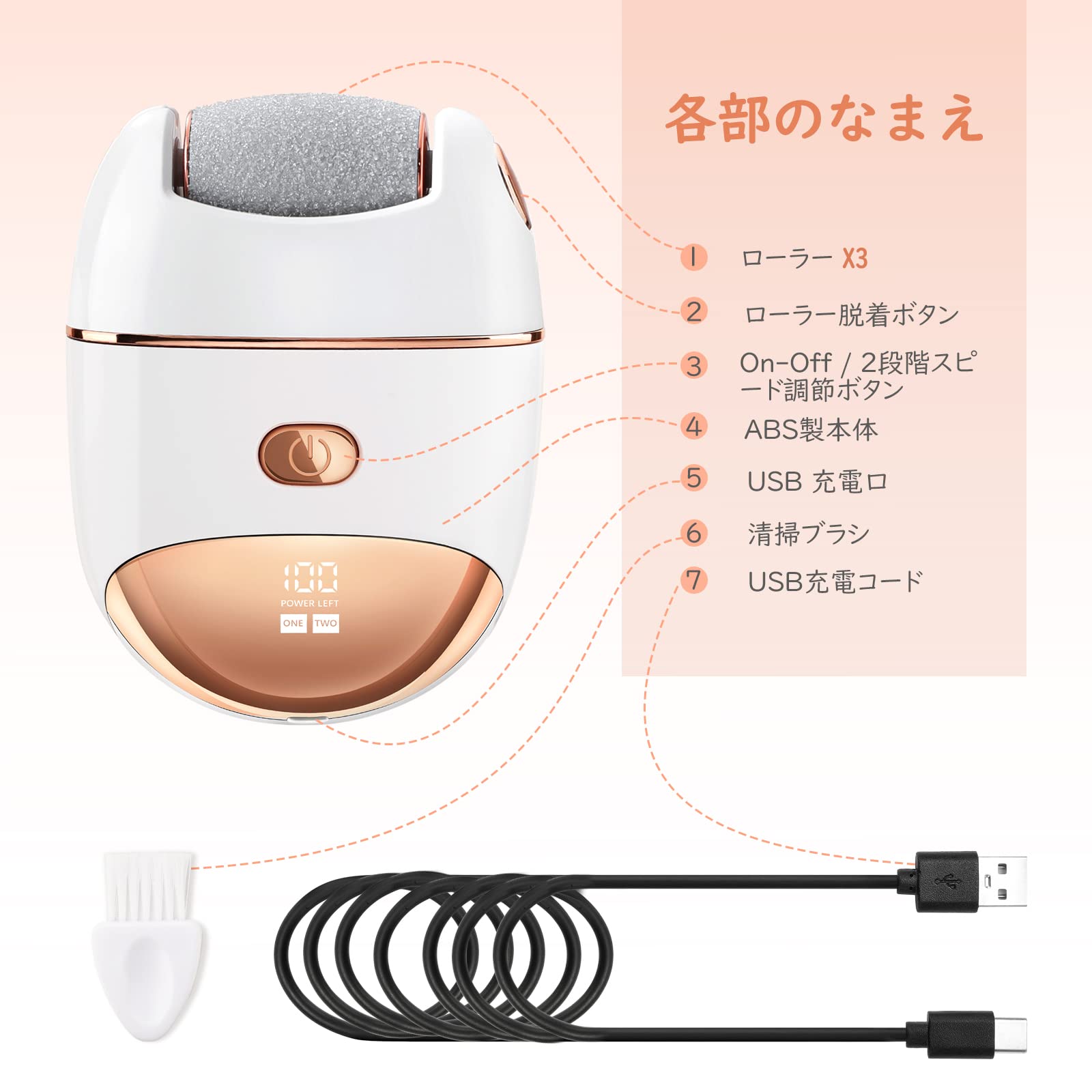 【特価商品】電動角質リムーバー Luxspire かかと 角質取り 3種ローラー 2段階強度調整 USB充電式 小型 ハードスキンリムーバー 防水規格IPX7 LEDライト付き LCDモニター付き ワンタッチ脱着 踵 角質取り 電池残量表示 かくしつとり 足 電動角質ローラー 角質ケア 水洗い可能 フットケアツール ホワイト | ニコニコSHOP
