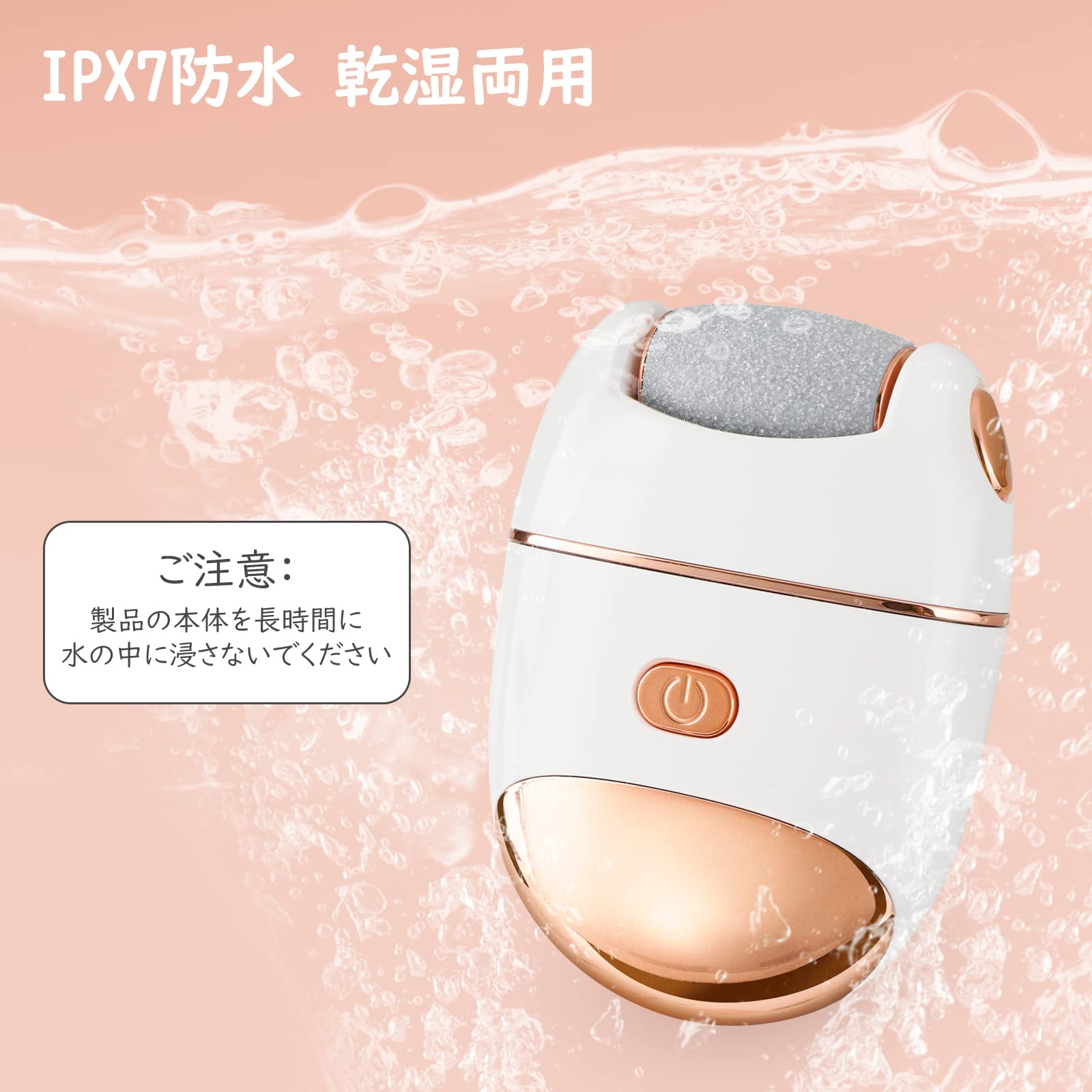 電動角質リムーバー Luxspire かかと 角質取り 3種ローラー 2段階強度調整 USB充電式 小型 ハードスキンリムーバー 防水規格IPX7 LEDライト付き LCDモニター付き ワンタッチ脱着 踵 角質取り 電池残量表示 かくしつとり 足 電動角質ローラー 角質ケア 水洗い可能 フットケアツール ホワイト
